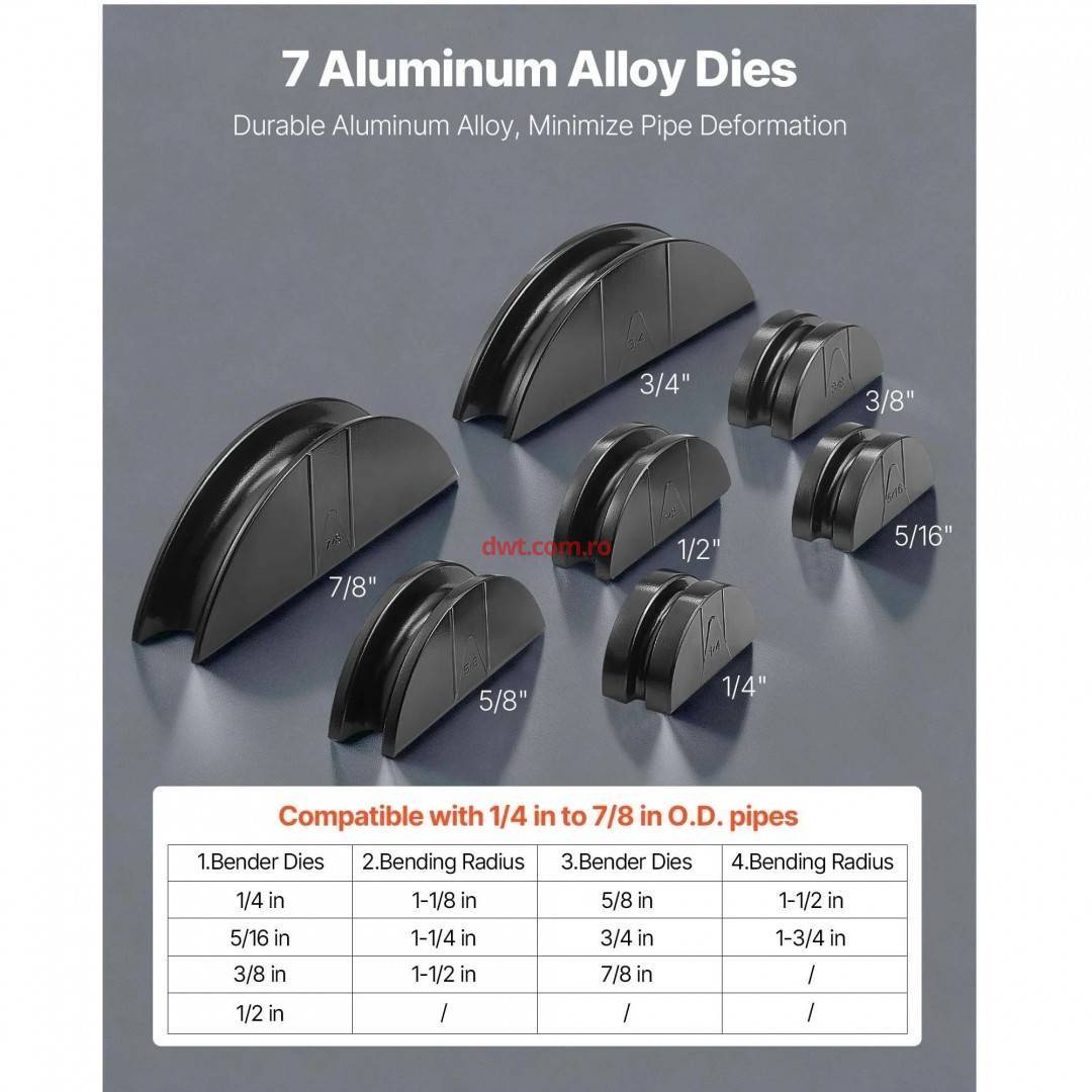 Comanda instant - VivaTechnix JLSDWGJYYKZXRKMPF001V0 Dispozitiv de indoit tevi cupru si aluminiu, 6-22 mm, Unghi maxim de îndoire 90°, 7 matrite, sistem hidraulic