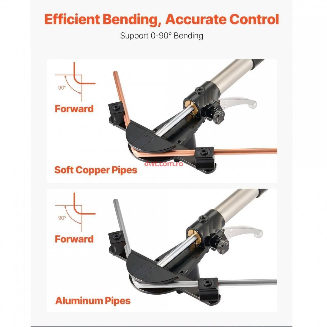 pana la 90°. Acest set de scule pentru indoirea tevilor HVAC este ideal pentru