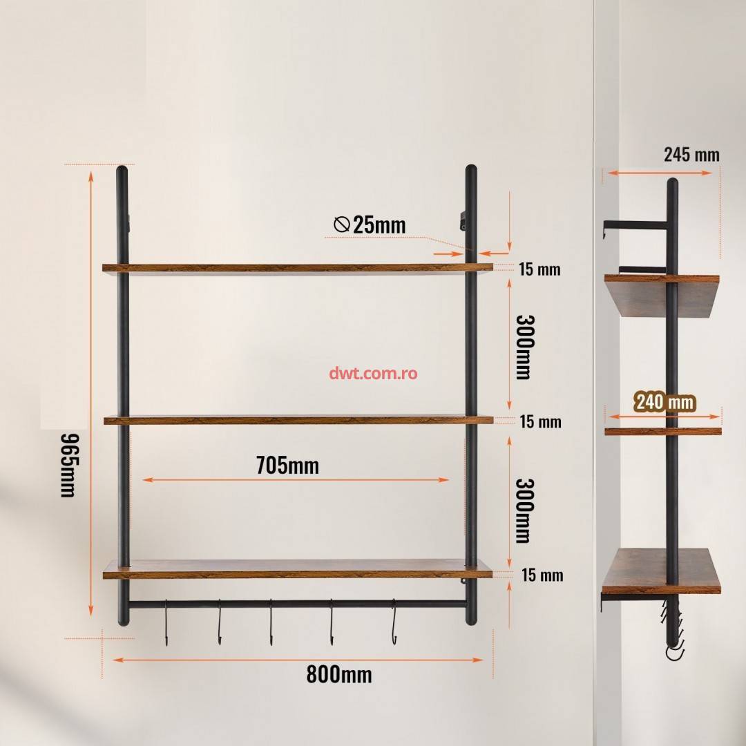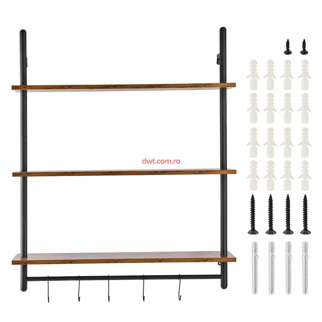 Raft metalic cu 3 x polite incluse din lemn, Vivatechnix