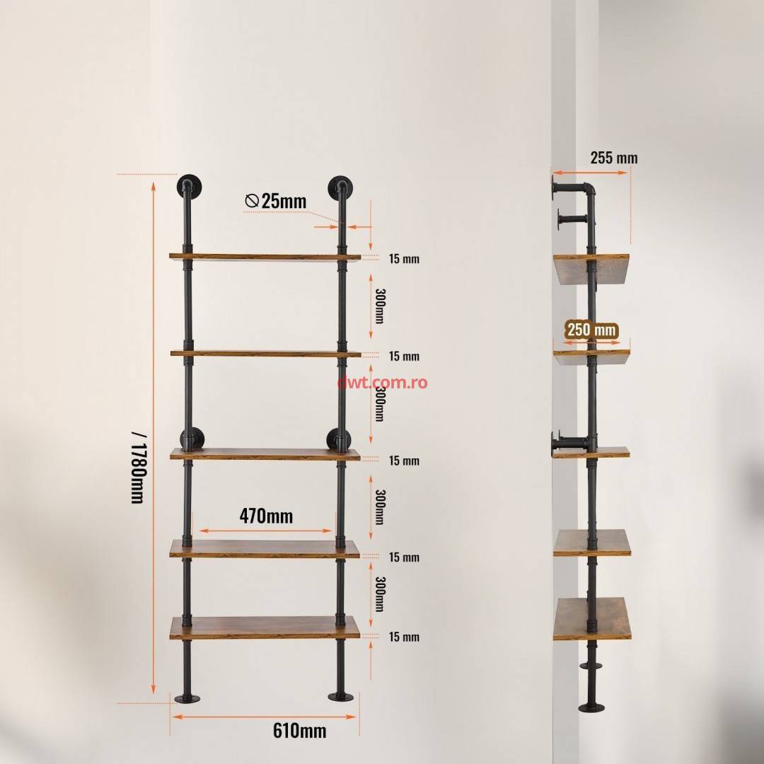 VivaTechnix JSGZWJYGHMBHZ07TOV0 Raft metalic cu 5 x polite incluse din lemn, Vivatechnix Industrial, 610 x 255 x 1780 mm |