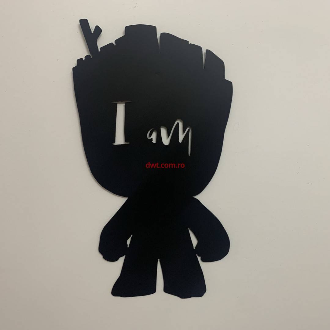 Decoratiune perete Krodesign Baby Groot, metal, negru, Inaltime 52 cm Caracteristici tehnice: FABRICAT IN ROMANIA Realizat din metal cu grosimea de 1.5 mm, de cea mai buna calitate, foarte solid, prevazut cu agatatoare pentru prindere Culoare negru mat Decoratiune de perete din metal, care va da un aer nou casei tale. Dimensiuni: Latime 28 cm Lungime 52 cm Greutate 1 kg