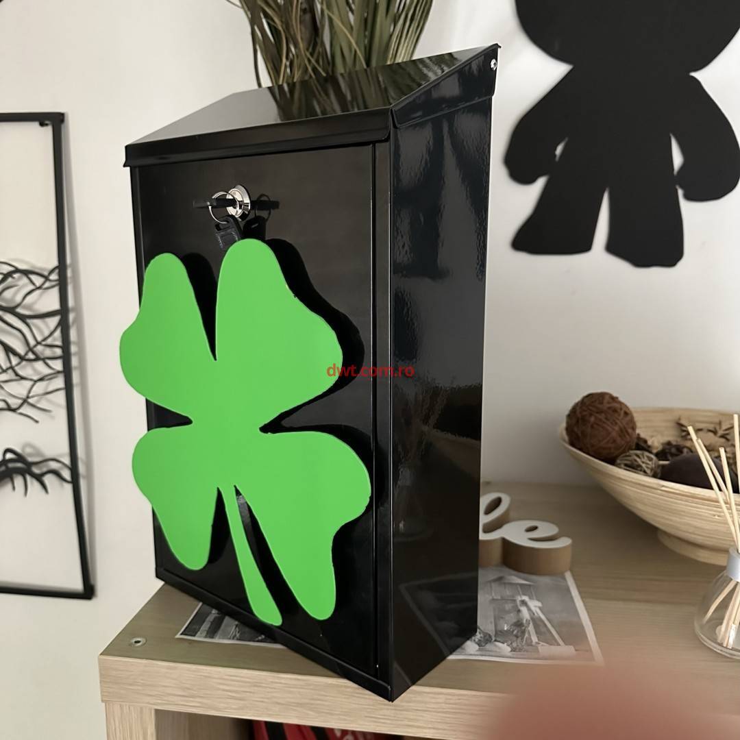 VivaTechnix KRO-1230 Cutie postala Vivatechnix Irish Clover KRO-1230, otel, 400x250x100mm, Negru/Verde, 2 chei |