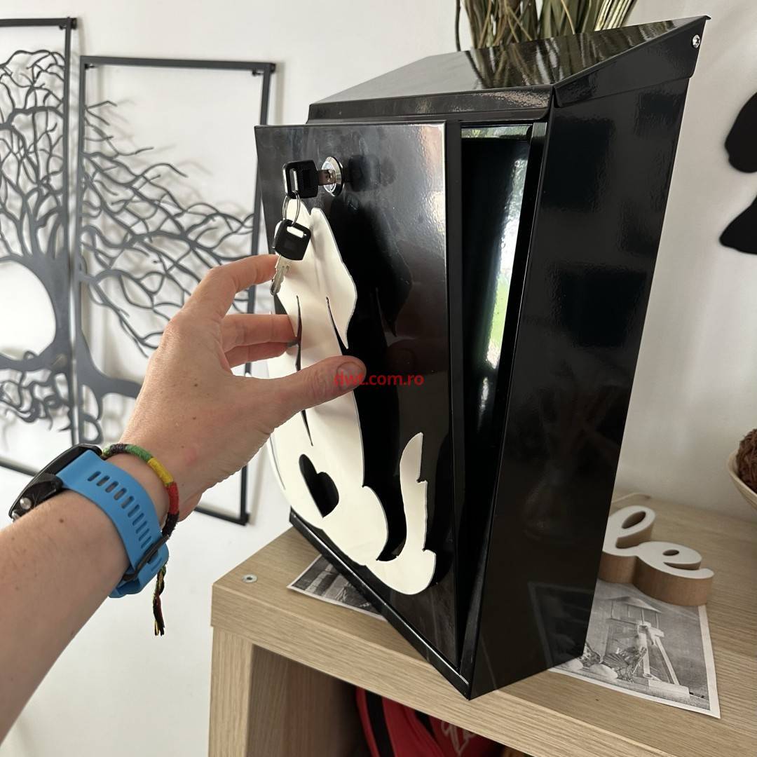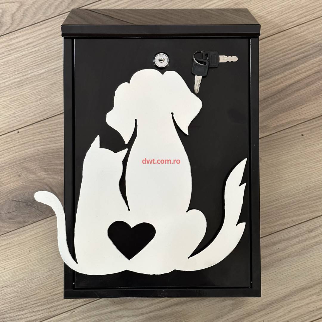 VivaTechnix KRO-1240 Cutie postala Vivatechnix Cat Dog KRO-1240, otel, 400x250x100mm, Negru/Alb, 2 chei |