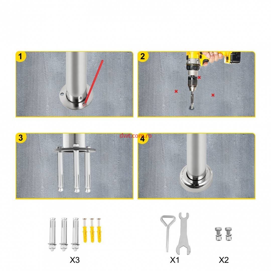 Balustrada inox, 1-2 trepte Vivatechnix Negru Mat, Inaltime 114 cm, lungime 80 cm, pozitii reglabile Balustrada flexibila in 1-2 trepte: 80 cm in lungime si 90 cm in inaltime este perfecta pentru scarile in aer liber cu 1-2 trepte. Unghiul de tranzitie 0-90° poate regla inaltimea de la partea de sus a balustradei la sol (34,2"-44,9"/ 86,8-114 cm) pentru a se potrivi scarilor sau verandelor. Balustrada treptei consta dintr-un suport de balustrada superioara si un stalp de teava de otel, oferind echilibru atunci cand familiile dumneavoastra urca si coboara scarile. Otel inoxidabil durabil: sina noastra de prindere pentru treapta este construita din otel inoxidabil de φ1,96"/ 50 mm, suficient de robust pentru a suporta incarcare de max. 440 lbs/ 200 kg fara deformare. Vine cu tehnica bine sudata si tehnologie lustruita, veranda noastra din fata balustrada are o performanta excelenta neteda si confortabila, nu va raneste mainile. In plus, balustrada este usor de curatat si intretinut. Montare pe perete si pe podea: gaurile pre-forate de φ 0,4"/ 9 mm pot fixa strans balustrada de perete si podea pe peretele din caramida, lemn sau beton pentru o stabilitate si securitate maxima. O garnitura de baza ornamentala de φ 3,3"/ 85 mm este atasata la acoperire suruburi si suruburi, oferind rezistenta la rugina si un aspect bun. Designul curbat ergonomic este perfect pentru a se potrivi cu decorul dvs. Kit de instalare pentru asamblare: Cu toate accesoriile necesare, setul de balustrada scarii poate fi asamblat fara efort de catre o persoana in cateva minute. Marcarea pozitiei dorite pe perete si podea, apoi gaurirea cu burghiu, urmeaza sa punem suruburi de expansiune si sa le fixati cu o cheie, in final, plasand garnitura de baza peste elemente de fixare. Aplicatie extinsa: Aceasta balustrada moderna de interior si exterior este conceputa pentru a va oferi o experienta de pas relaxata si placuta. Balustrada fantastica poate fi instalata pe trepte si scari pentru terasa, balcon, veranda, gradina, cladire rezidentiala, cladire de birouri comerciale, hotel, garaj etc. Culoare: Argintiu Material: otel inoxidabil Unghi reglabil: Max.150° Pas: Un pas |