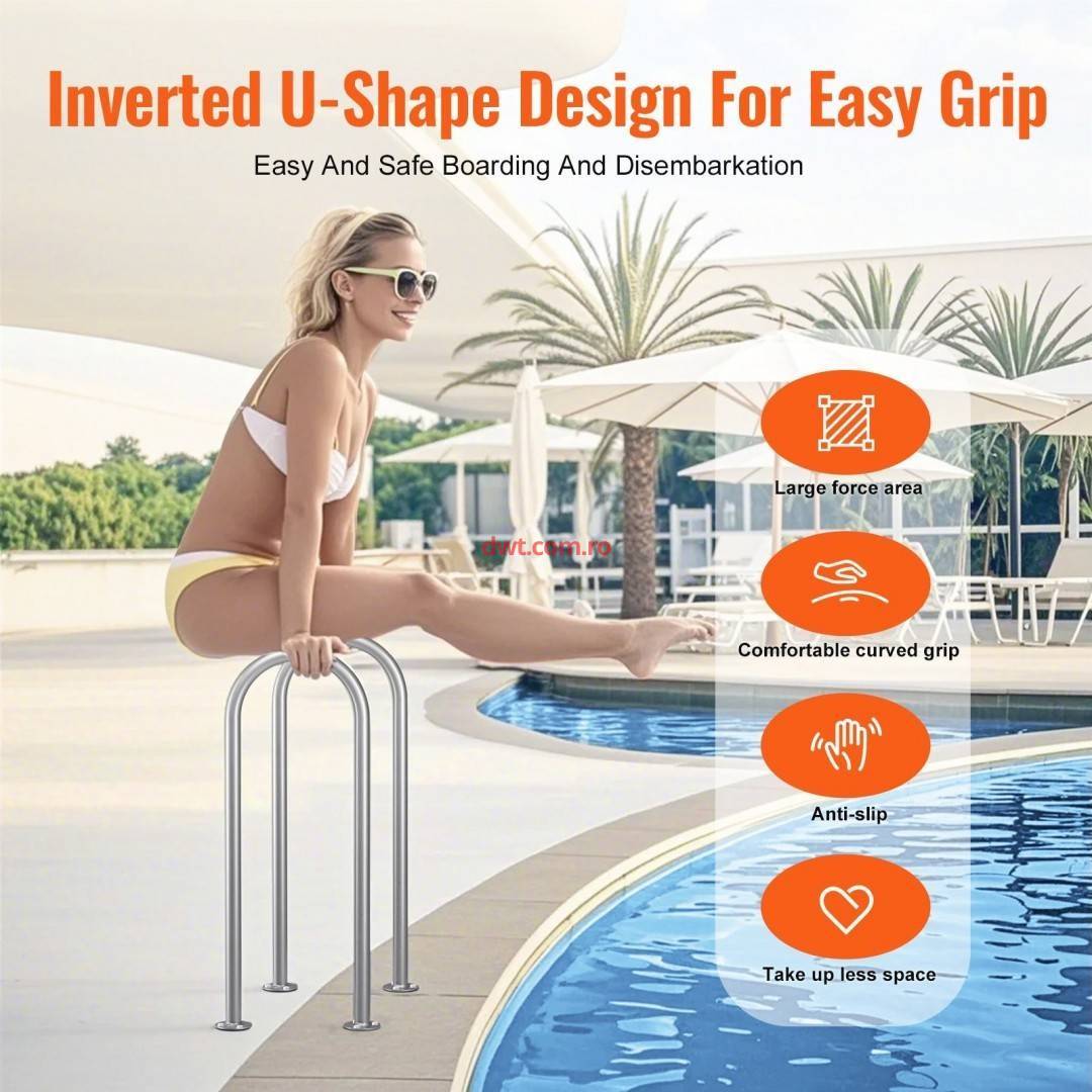 VivaTechnix LZYCFSDDB1W3MXYPNV0 Balustrada aluminiu pentru piscina, 400 x 90 x 915 mm, Capacitate 100 kg, protectie UV, accesorii montaj incluse |