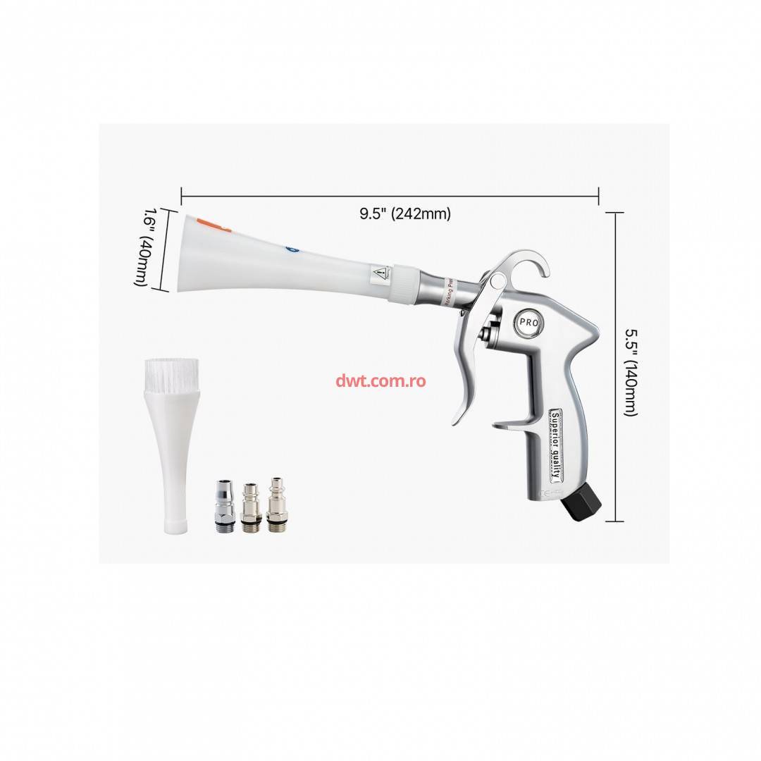 VivaTechnix PJWLQJQCCKXJ8M52GV0 Pistol de suflat cu aer comprimat cu duza rotativa Tornado 100 ml/min, 6-9.2 bar, 3 x conectori |