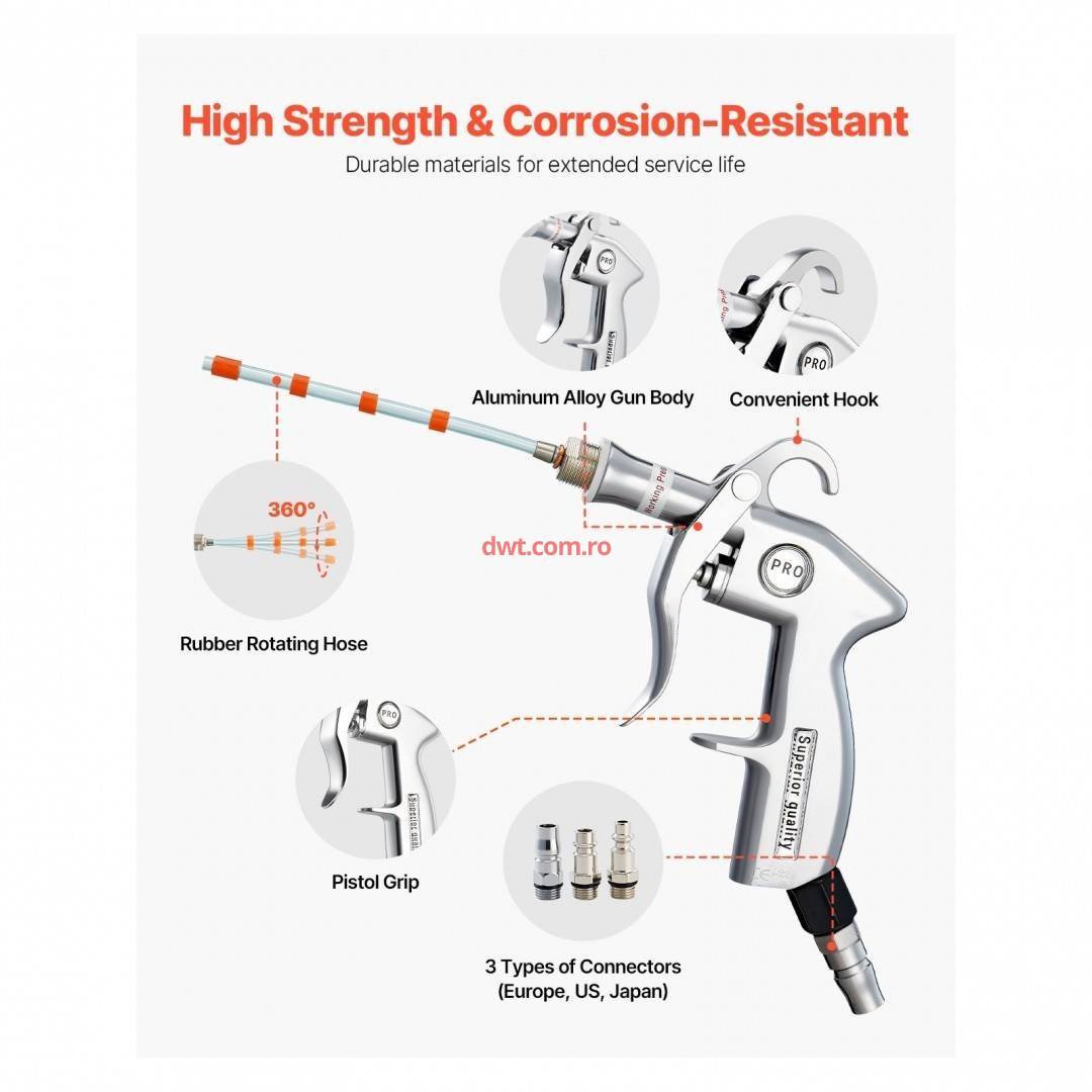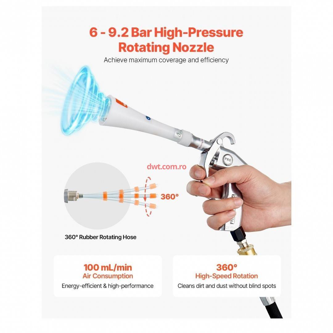 Comanda instant - VivaTechnix PJWLQJQCCKXJ8M52GV0 Pistol de suflat cu aer comprimat cu duza rotativa Tornado 100 ml/min, 6-9.2 bar, 3 x conectori