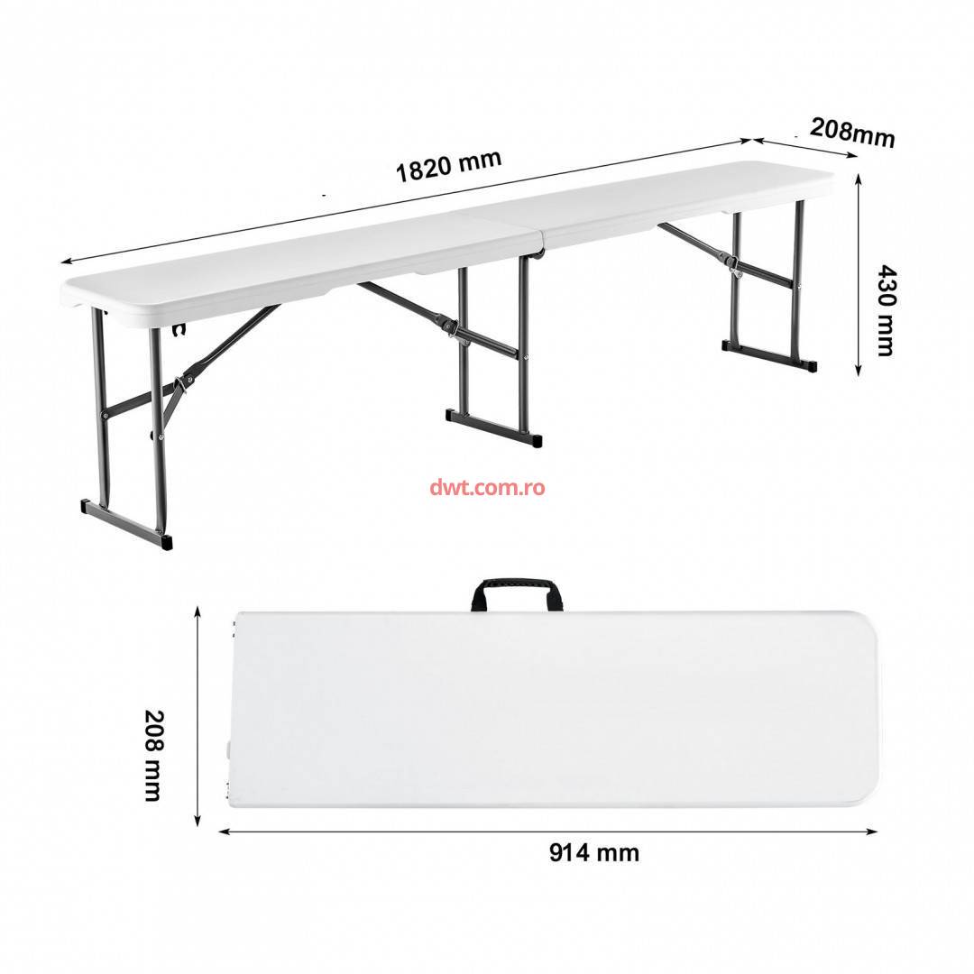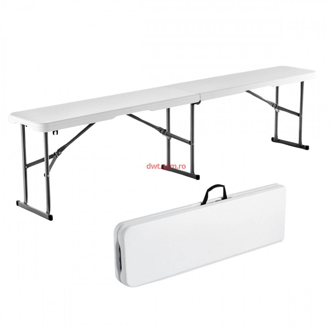 Set 2 banci pliabile 1830x307x430 mm, HDPE si Otel, pentru gradina sau catering, Alba