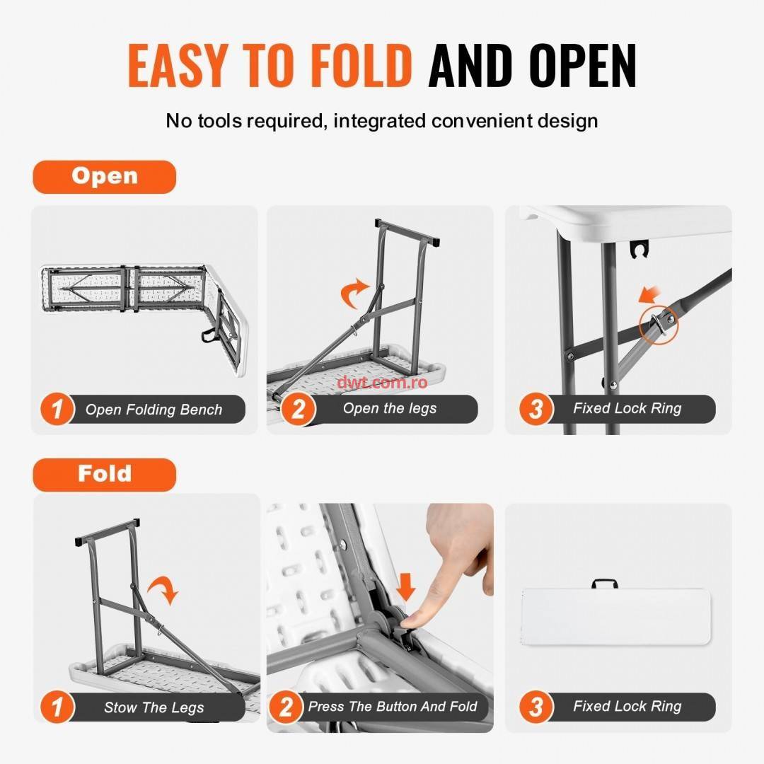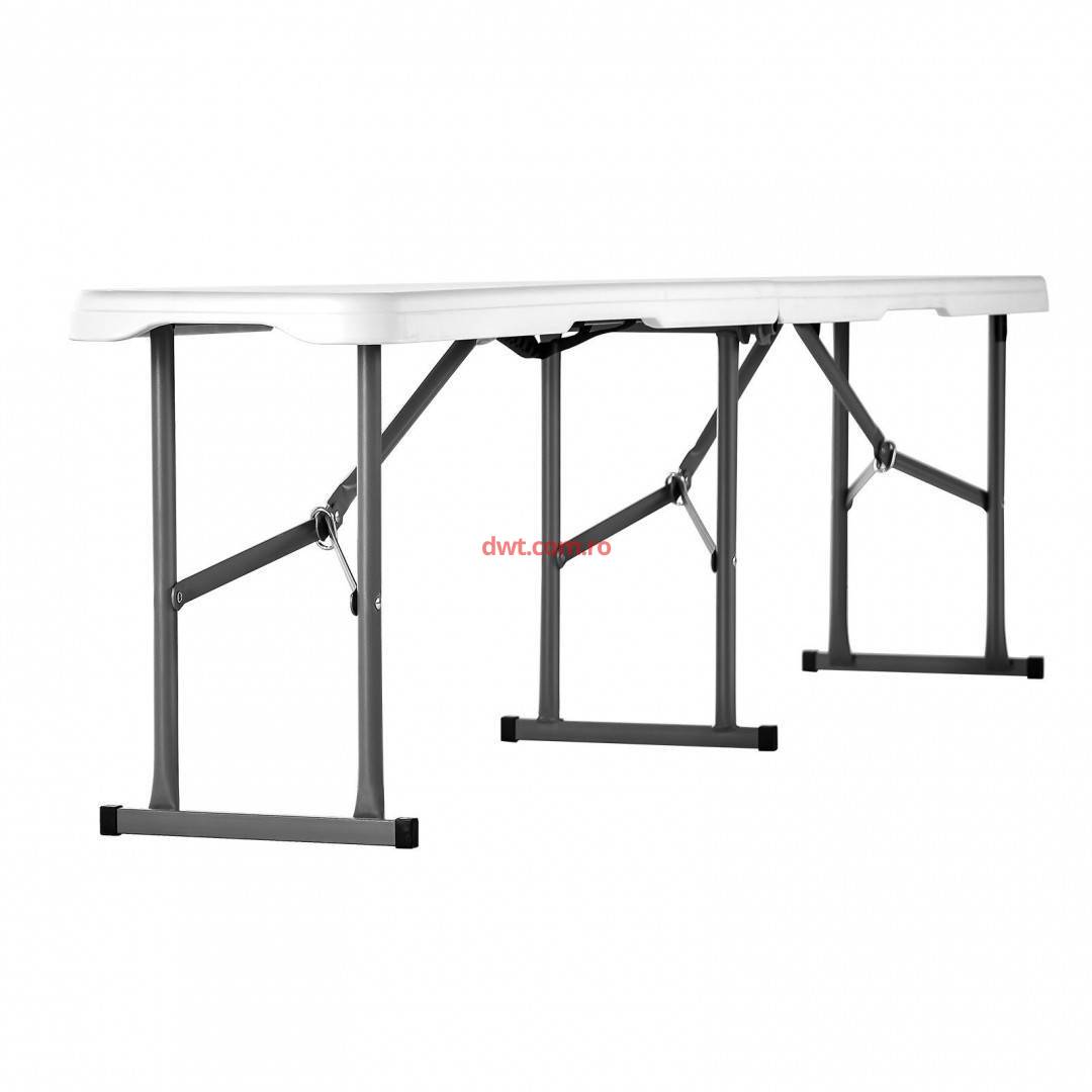 Comanda instant - VivaTechnix SLKZDYDZY6FTUQW6VV0 Set 2 banci pliabile 1830x307x430 mm, HDPE si Otel, pentru gradina sau catering, Alba