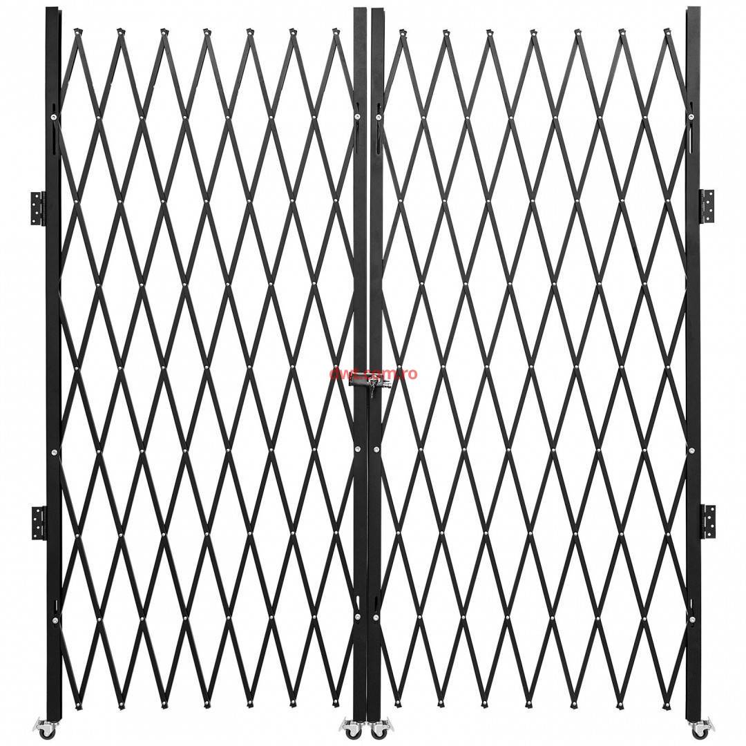 Poarta dubla pliabila de securitate, Otel, Negru, 4 x roti,