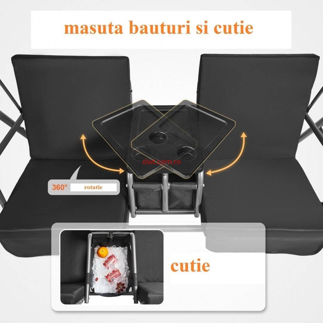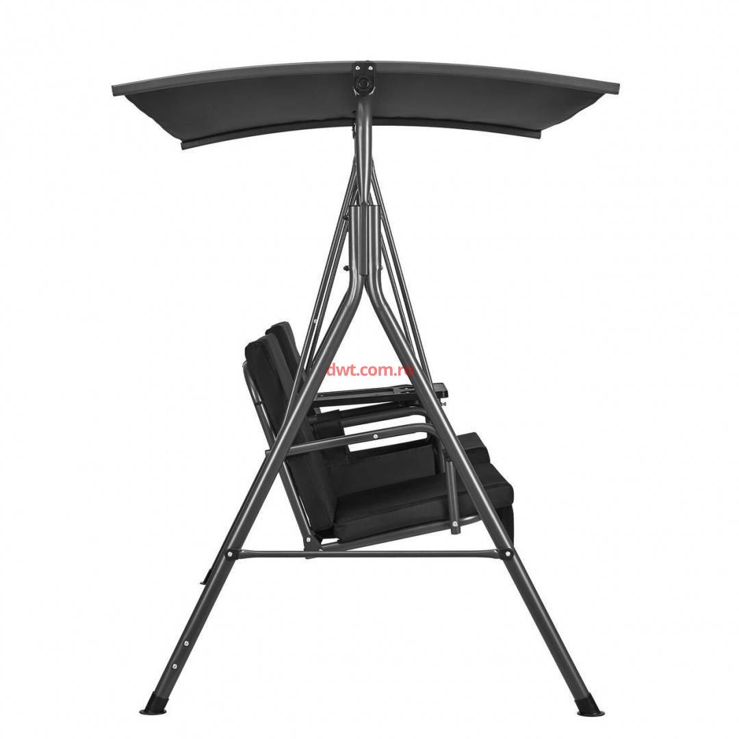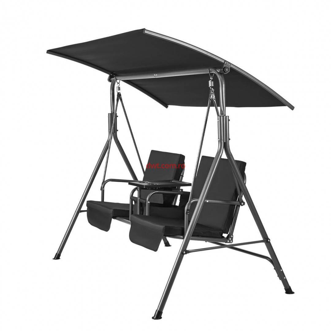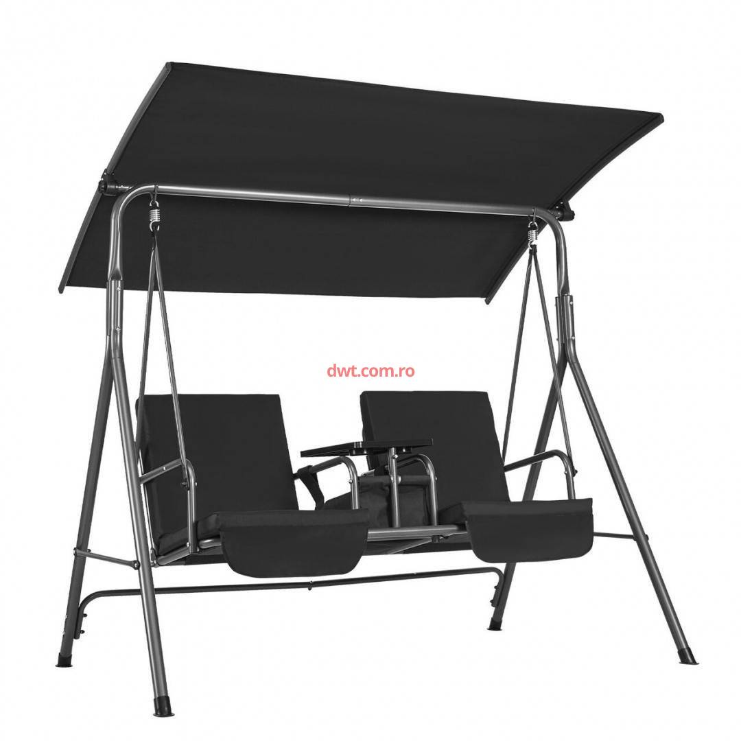 Comanda instant - VivaTechnix TJQQ71INX53IW648VV0 Leagan otel 2 persoane, Masuta rotativa, Negru, cutie depozitare, 1740×1095×1550 mm, max 200 kg