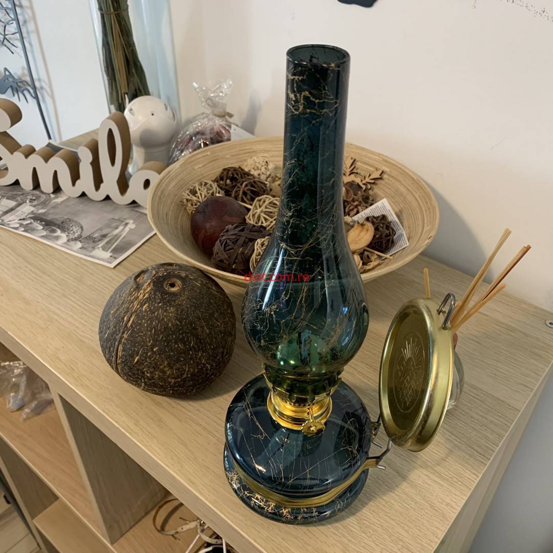 Rezervorul si abajurul sunt din sticla colorata cu insertii