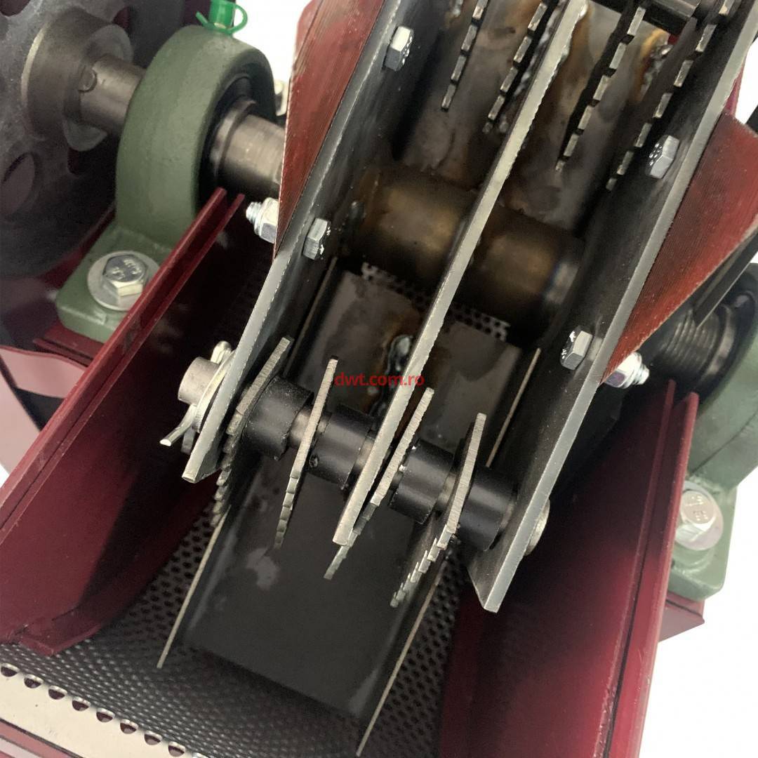Se poate folosi in orice gospodarie fiind un produs cu 2 functii: 1. Macinare cereale (porumb, grau, orz,ovaz, etc) – obtinere uruiala prin site de dimensiuni diferite avand gauri de 4mm, 6mm sau 8mm 2. Maruntirea resturilor furajere de la porumb, floarea soarelui, paioase, orz, secara , lucerna, etc. Aceasta masina asigura o productivitate crescuta datorita unei cuve de alimentare generoase si al unui motor puternic de 3 kW/2800 rot/min. Transmisia este realizata prin curea protejata de aparatoare metalica. Model compact si utilizare usoara. -Tensiune alimentare: 230V/50Hz -Putere motor: 3 kW/2800 rot/min -Productivitate moara cereale: max 500 kg/h la sita mare -Productivitate tocator furaje: max 200 kg/ora -Nivel de zgomot < 80dB -Dimensiuni gabarit (LxlxH):55x80x118 cm in stare montata -Greutate totala cu motor montat : 55kg -Greutate motor 3kw/3000rpm/220V: 22kg Se livreaza cu 3 site de 4mm, 6mm si 8 mm. Tocatorul permite accesul rapid la camera de macinare.