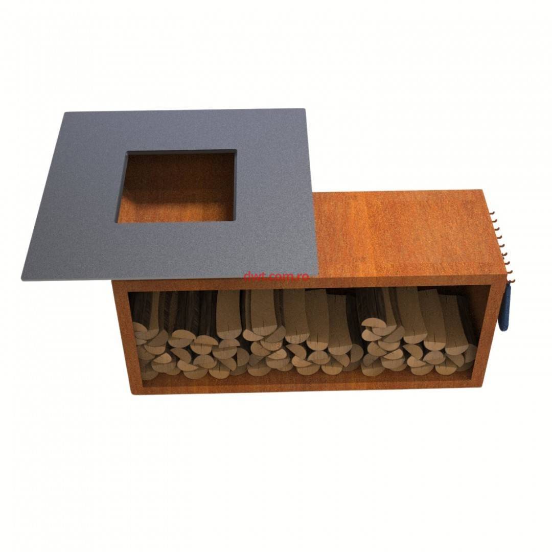 Material: Otel corten 3 mm vatra si spatiul de depozitare