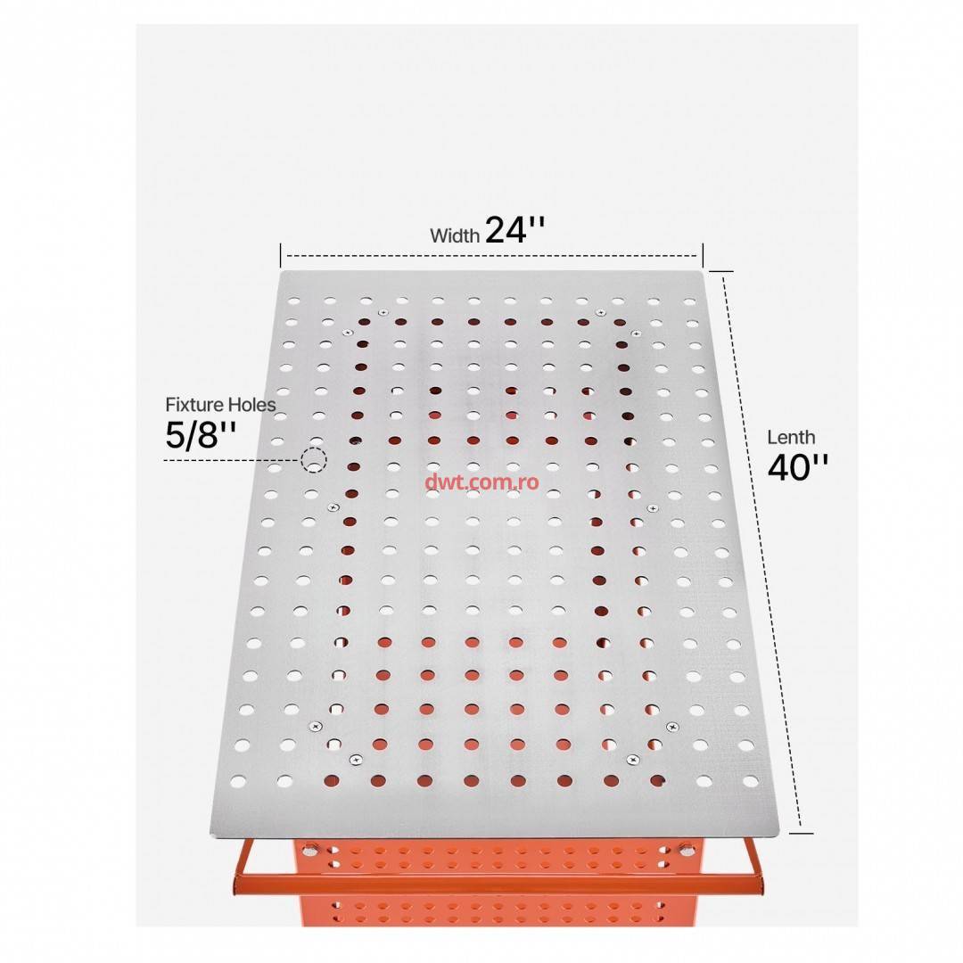 VivaTechnix YDXHZ800LB369KJXOV0 Masa de sudura mobila, 1016 x 609.6 x 914.4 mm, Capacitate 400 kg, 216 gauri, 11 carlige, spatiu depozitare, 4 x roti |
