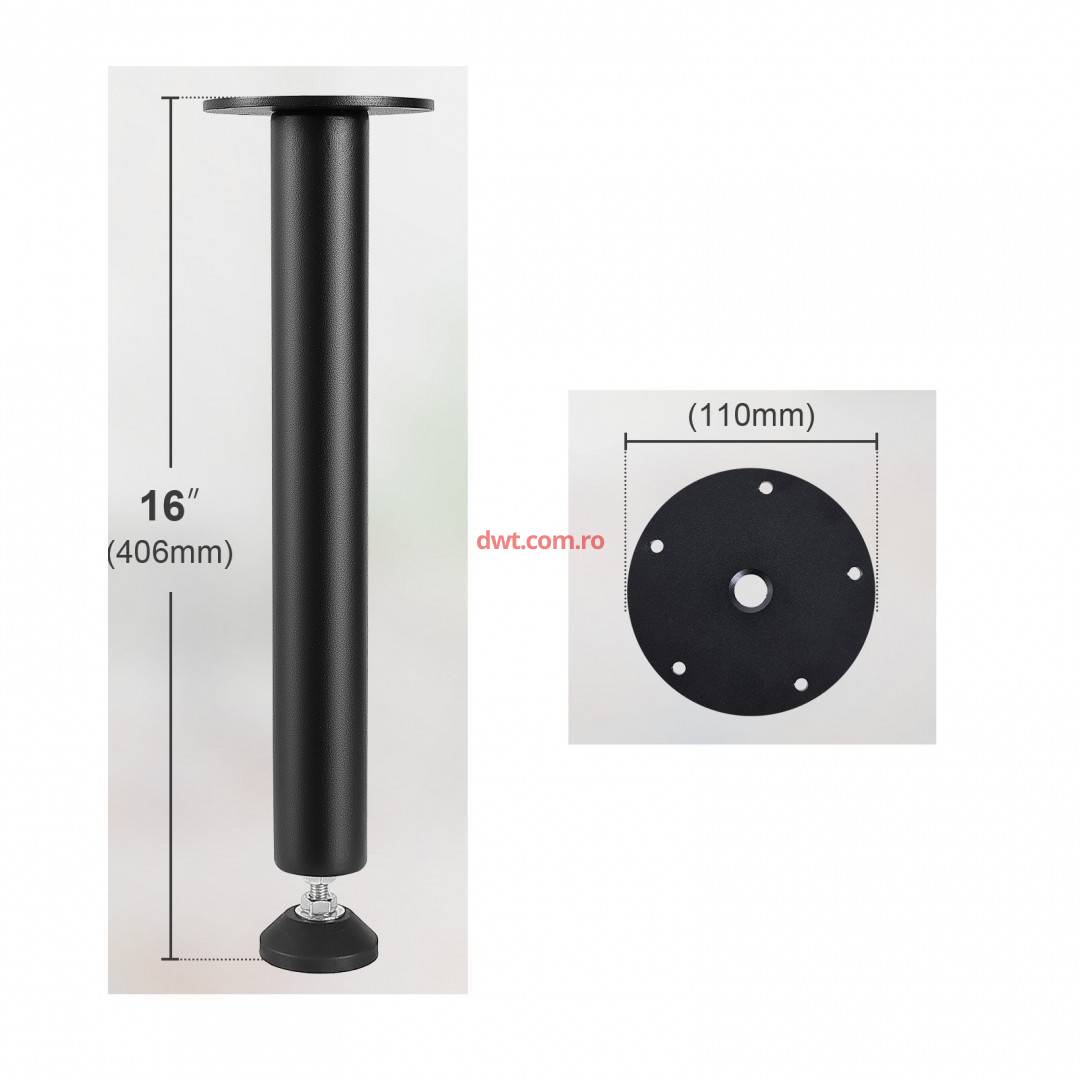 VivaTechnix ZGZT2YC16INCQVIUPV0 Set 4 picioare de masa reglabile, Vivatechnix Otel, inaltime 406.4 mm, capacitate max 544 kg, Negru mat |