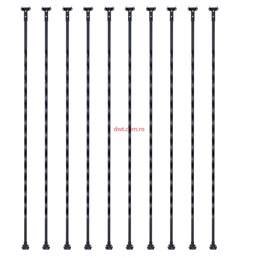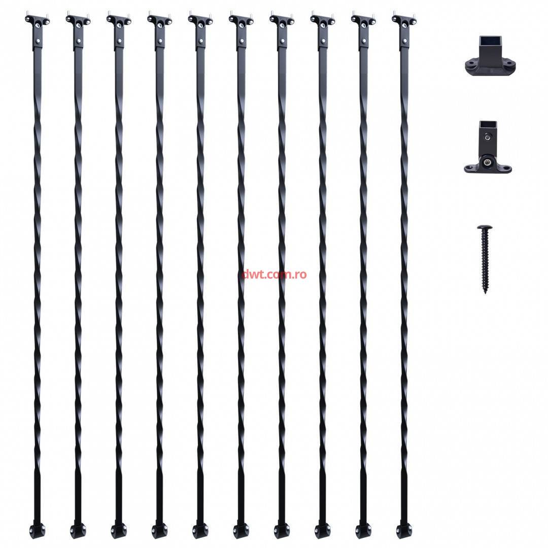 Specificatii set de 5 piese: Acest set include 10 balustrade spiralate 10 masti de balustrada, 20 de suruburi si 1 manual de instructiuni. Fiecare arbore masoara 1122 mm in lungime cu o latime de 13 mm, compatibil cu majoritatea conectorilor de balustrada sau incaltaminte disponibile pe piata, potrivite pentru majoritatea cadrelor de balustrada.