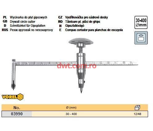 VOREL 03990 Compas taietor pentru placi de gips carton Vorel 30-400mm |