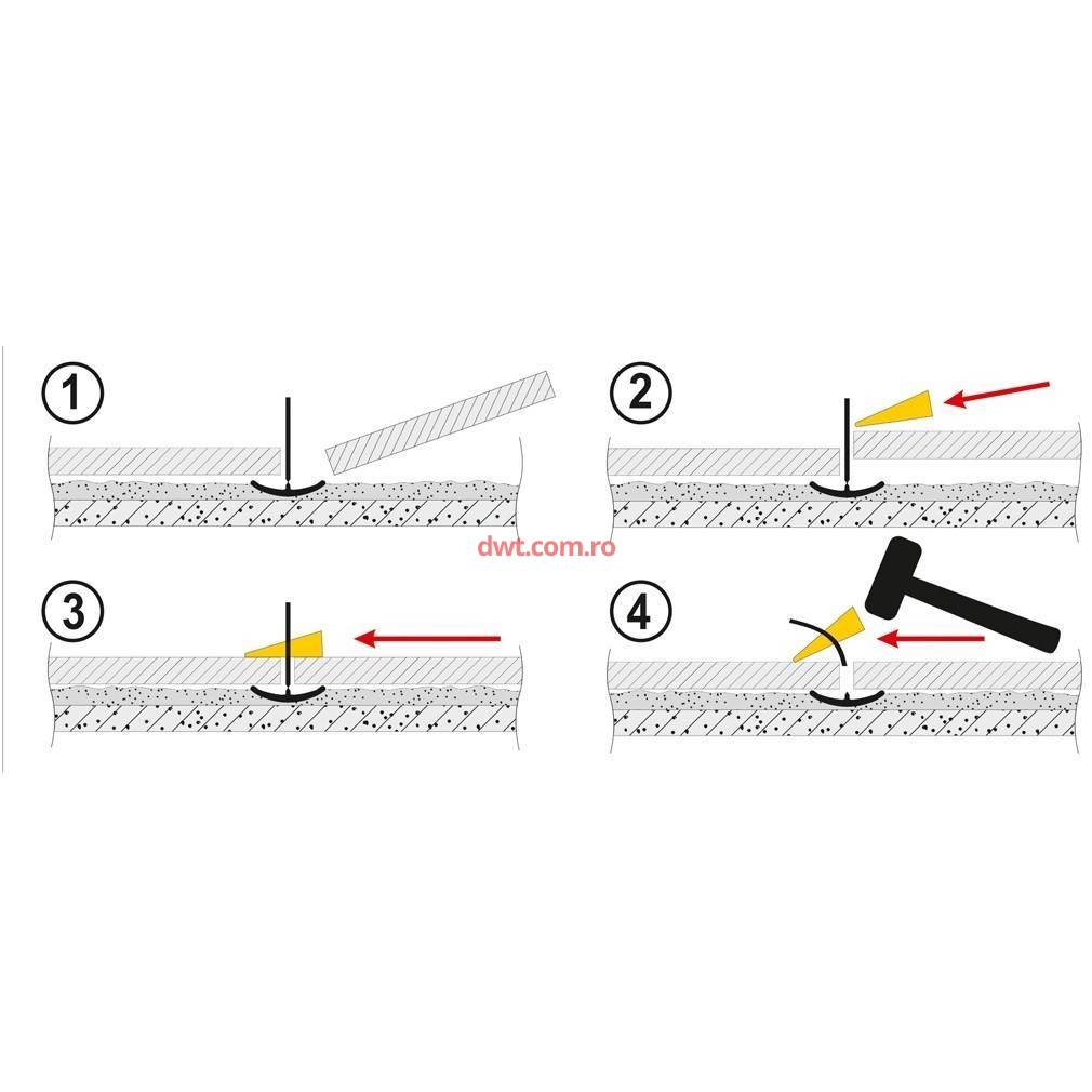 Set 100 de pene si clipsuri pentru nivelat placi ceramice Vorel 04691, min 1.5mm, max 14mm Caracteristici tehnice: Un sistem modern de nivelare a placilor, care intr-un mod foarte rapid si usor ajuta la asezarea placilor perfecte, economisind timp si eliminand inexactitatile suprafetei. Se compune dintr-un set de cleme de ruptura si pene reutilizabile din plastic de inalta calitate. - inlocuieste crucile inguste - previne deplasarea in timpul instalarii si adezivului - accelereaza asezarea placilor, mentinand imbinarile si imbinarile perfecte - nu este nevoie de instrumente suplimentare - poate fi folosit pe pereti si podele - usor de asamblat la orice nivel de calificare Pentru ceramica, portelan, faianta rectificata si faianta de diferite dimensiuni si grosimi. • Folosit pentru nivelarea placilor, • Reduce semnificativ timpul de lucru si creste eficienta. • Stabilizeaza pozitia • Datorita sistemului, se obtine o suprafata uniforma fara nivelari excesive repetitive. • Nu este nevoie de instrumente suplimentare, nu necesita efort - usor de asamblat pentru toate nivelurile de calificare. • propus profesionistilor din gresie si celor fara experienta. Chitul minim la asezarea placilor este de 1,5 mm, in timp ce folosind cruci de distanta, putem obtine latimea dorita. Grosimea maxima a placilor la care poate fi utilizat sistemul: 14 mm. Numar de pene si cleme pe 1 m2 in functie de dimensiunea placii: 30 cm x 30 cm - 42 buc 33 cm x 33 cm - 36 buc 40 cm x 40 cm - 20 buc 45 cm x 45 cm - 28 buc 50 cm x 50 cm - 24 buc 60 cm x 60 cm - 10 buc 80 cm x 80 cm - 10 buc 60 cm x 30 cm - 22 buc 100 cm x 50 cm - 16 buc 120 cm x 60 cm - 10 buc Metoda de utilizare 1. Dupa aplicarea lipiciului, introduceti clemele sub placi, astfel incat sa existe 2 cleme pe fiecare parte a placii. 2. Mutati placa urmatoare spre cleme. 3. Introduceti pana in orificiul clemei si apasati in jos pentru a alinia placile una cu cealalta. 4. Dupa ce mortarul de glazura (cleiul) s-a intarit, indepartati clema atingand-o usor. Continutul pachetului pene - 50 de bucati cleme - 50 bucati Greutate 0.39 Kg |
