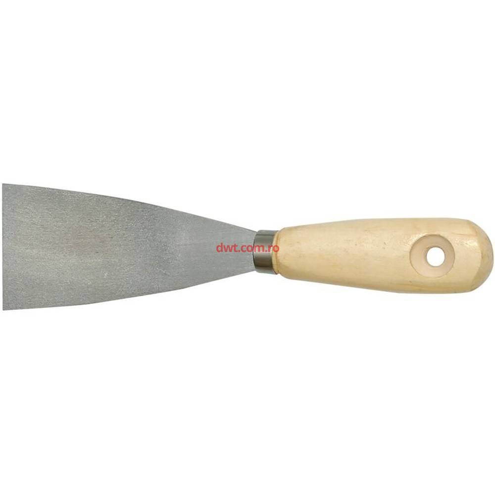 Maner clasic din lemn acoperit cu un strat incolor de lac si gaurit pentru agatare. Lama din otel inoxidabil ce previne rugina. Necesar pentru majoritatea lucrarilor de constructie si vopsire, utilizate pentru finisarea lucrarilor de netezire a peretilor si de umplere a pierderilor sau pentru indepartarea murdariei de la suprafata. Latime : 50 mm. |