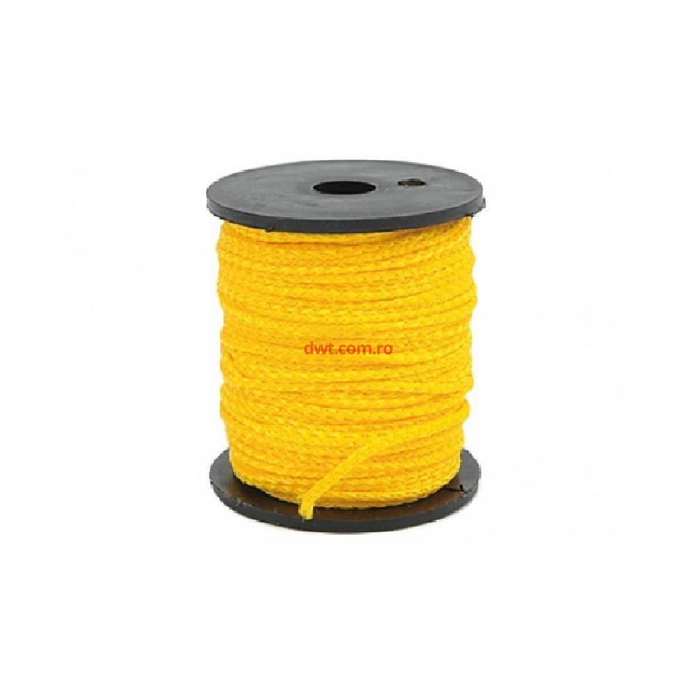 Caracteristici tehnice: Mosor de sfoara cu o lungime de 100 m realizat din material plastic. Rezistent la rupere și întindere. Este folosit pentru a determina liniile drepte în cursul efectuării unei varietăți de lucrări. Înfășurată pe o bobină de plastic. Indispensabil pentru lucrari de zidarie, vopsire si geodezie . |