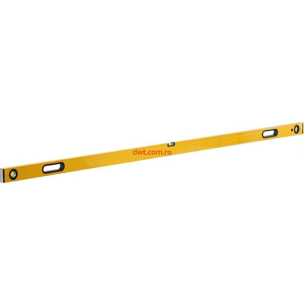 Are doua manere si trei flacoane pentru marcarea unghiului vertical, orizontal si de 45°. Capetele nivelului de etansare si suportul flaconului sunt protejate impotriva deteriorarii prin insertii din plastic flexibil. Lungime: 2000 mm. |
