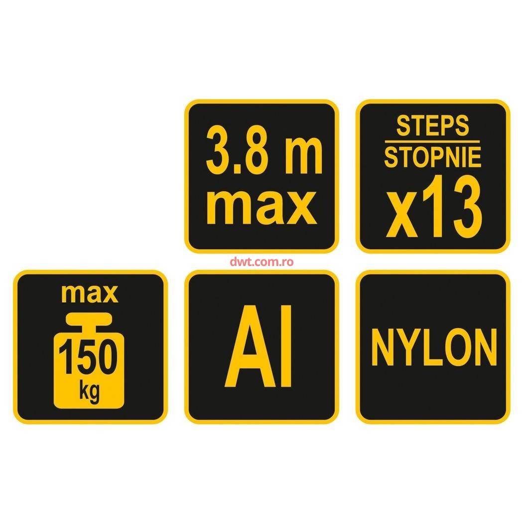 Comanda instant - VOREL 17701 Scara telescopica aluminiu 3.8m,13 trepte, Vorel 17701