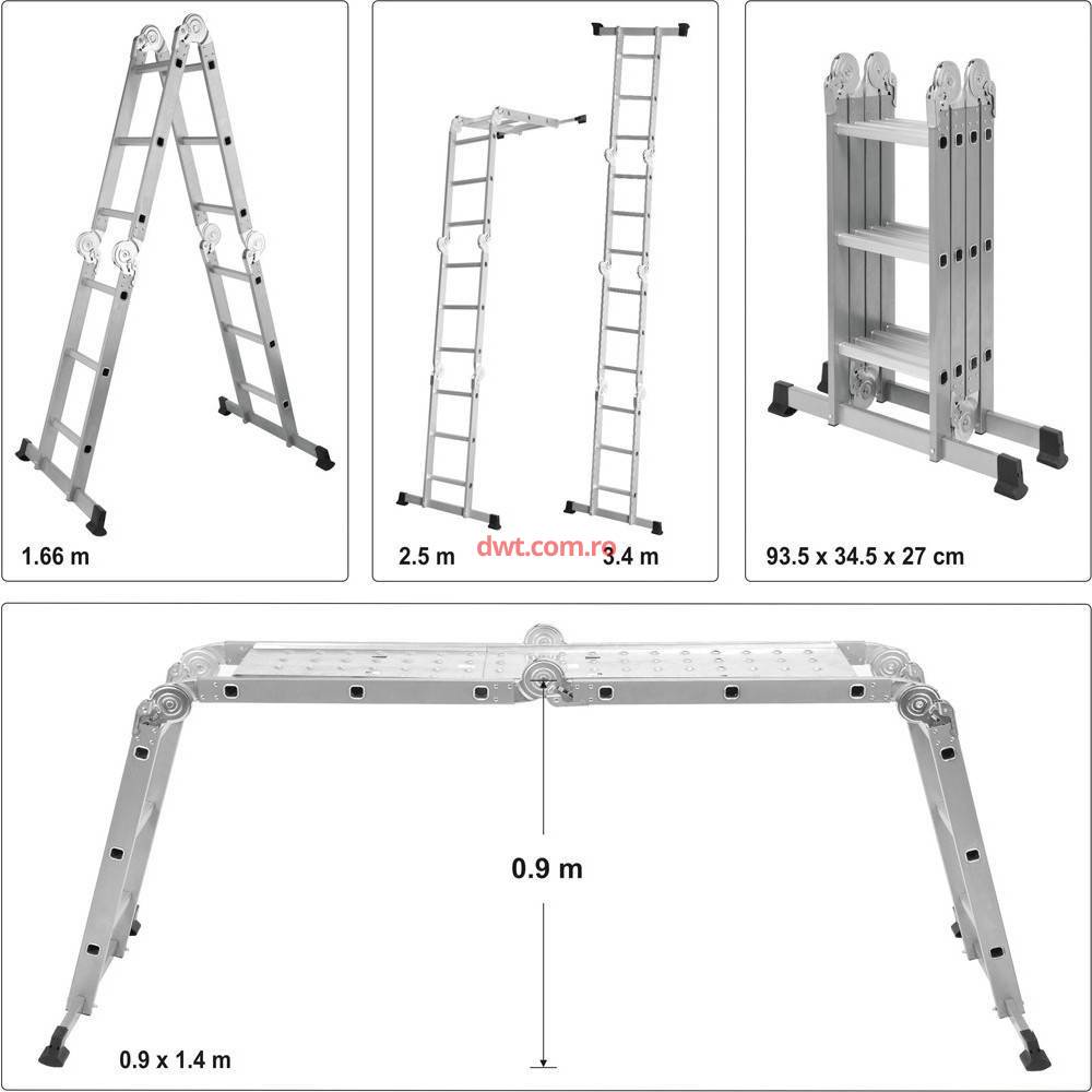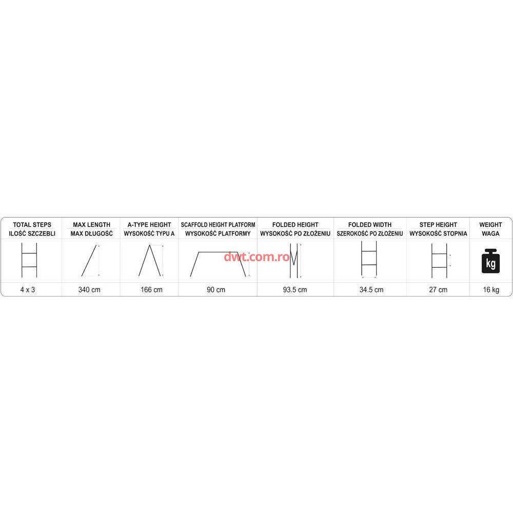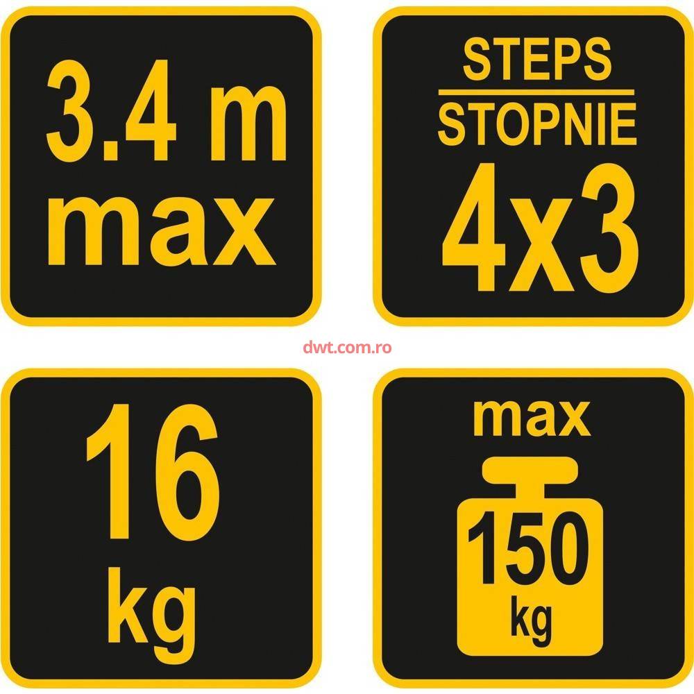Comanda instant - VOREL 17704 Scara multifunctionala, 3,4 m, 4X3 trepte, Vorel 17704