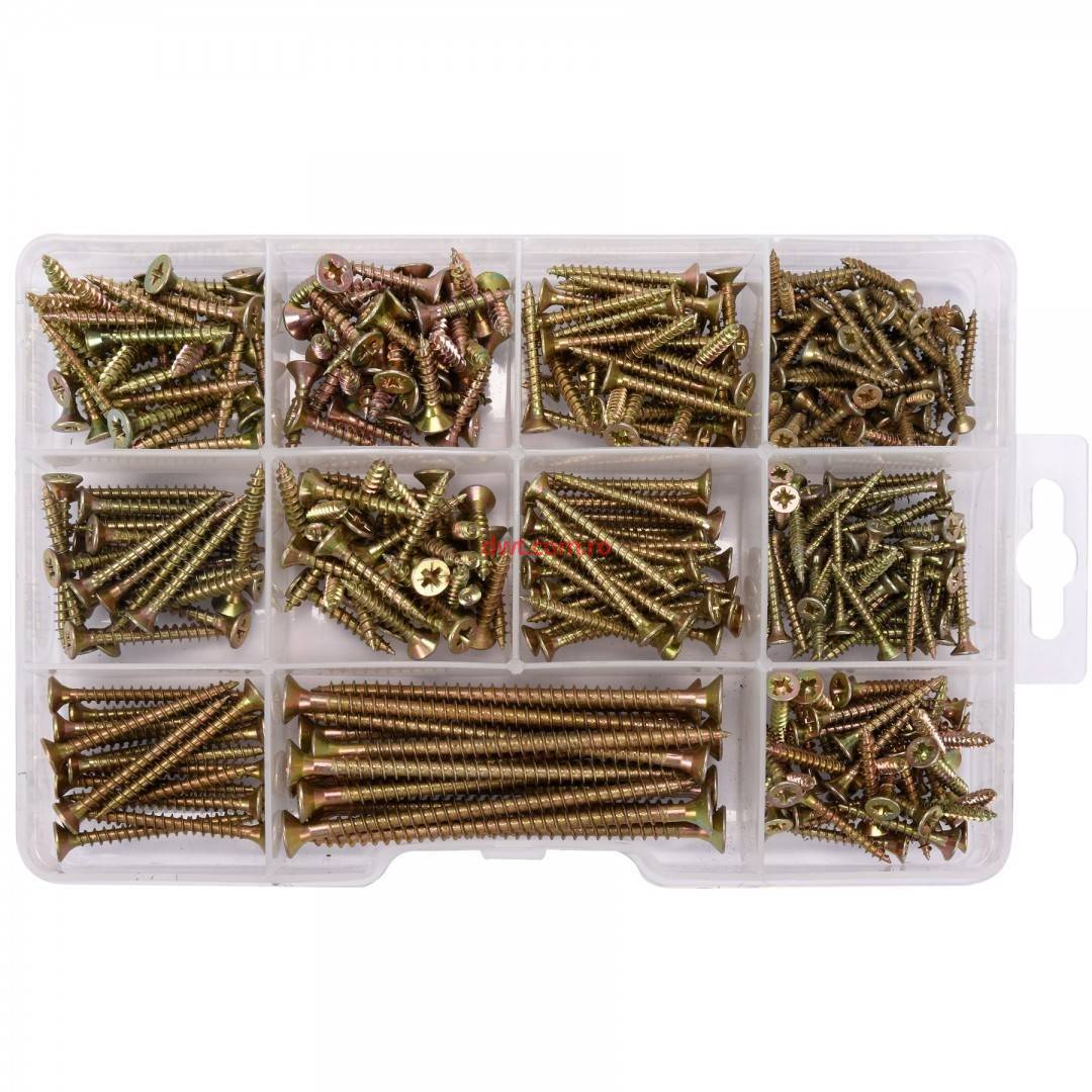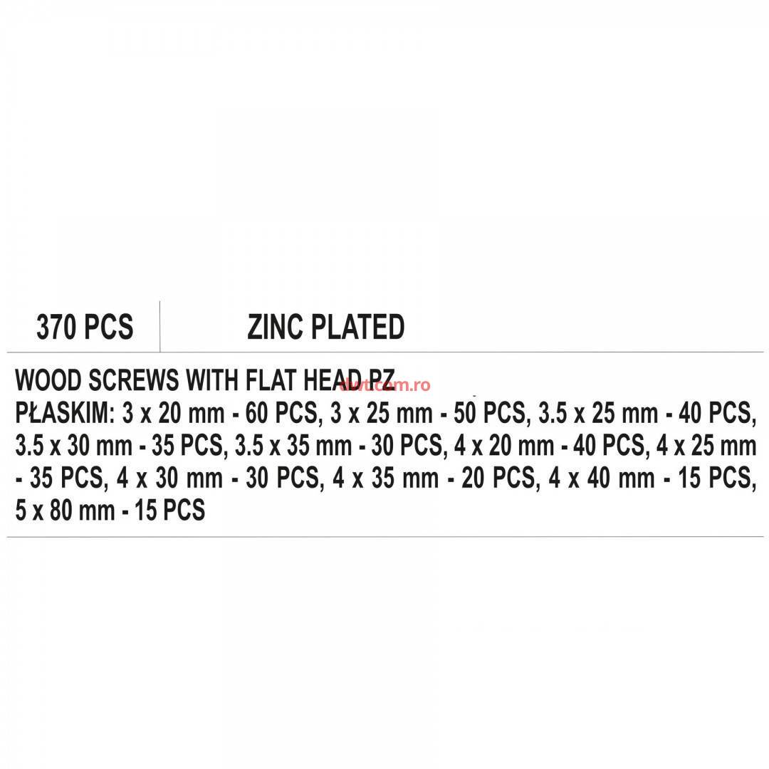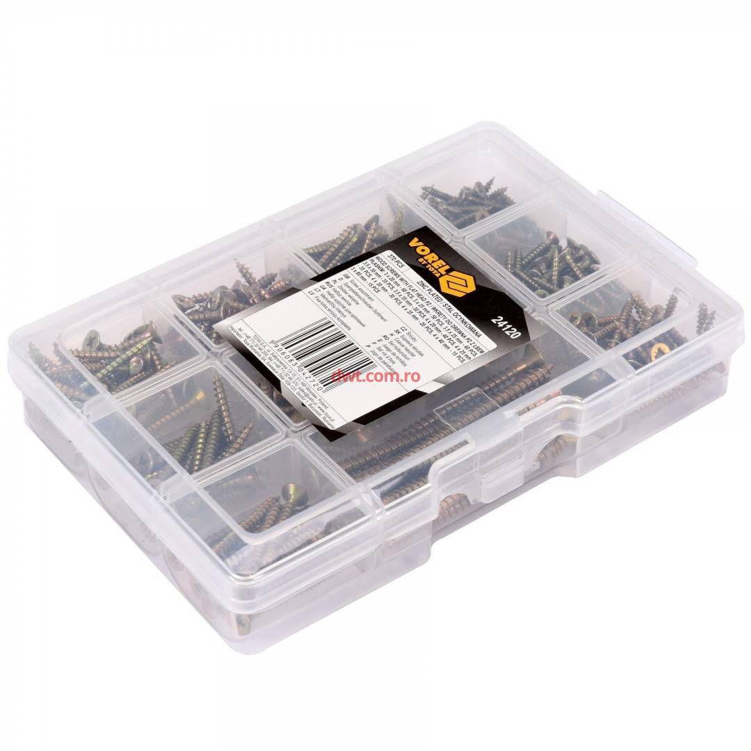 Comanda instant - VOREL 24120 Set 370 de suruburi pentru lemn Vorel 24120, cu cap plat, in cruce