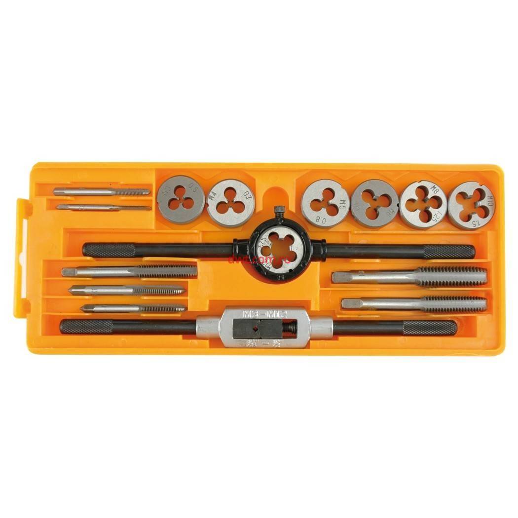 Vorel Polonia Caracteristici tehnice: Cod produs: 24295 Set de filiere si tarozi M3-M12 Pentru filetare manuala Confectionate din otel Setul include: Tarozi M3, M4, M5, M6, M8, M10, M12 Filiere M3, M4, M5, M6, M8, M10, M12 Buton M3-M12 Maner M3-M12 Cutie de plastic pentru depozitat si transport Greutate: 670g |