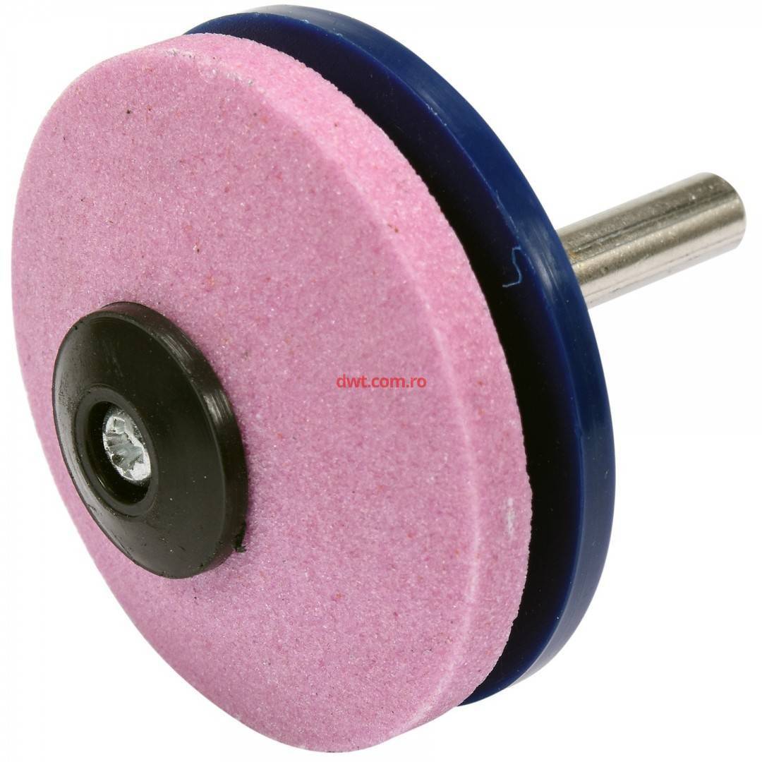 Un disc abraziv profilat din corindon de crom este montat