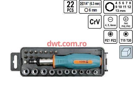 Comanda instant - VOREL 60976 Set biti si capete tubulare cu antrenor, 22buc., Vorel 60976