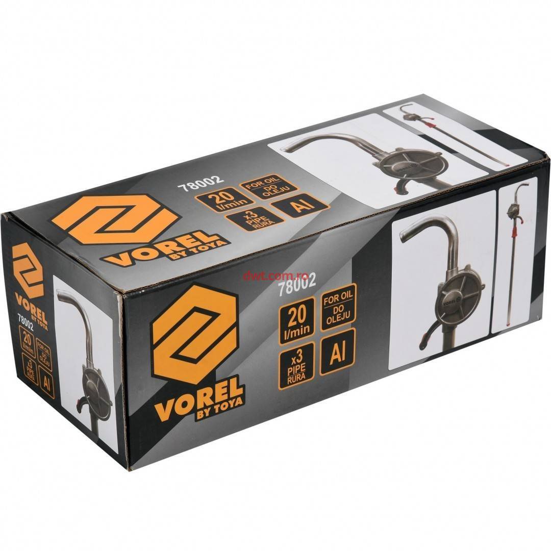 Comanda instant - VOREL 78002 Pompa de transfer ulei Vorel 78002, capacitate 20 l/min, manuala, aluminiu
