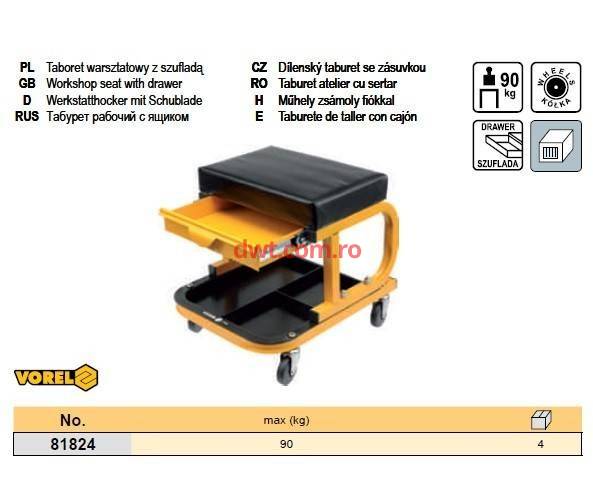 VOREL 81824 Taburet service cu sertar si tava scule Vorel 81824 |