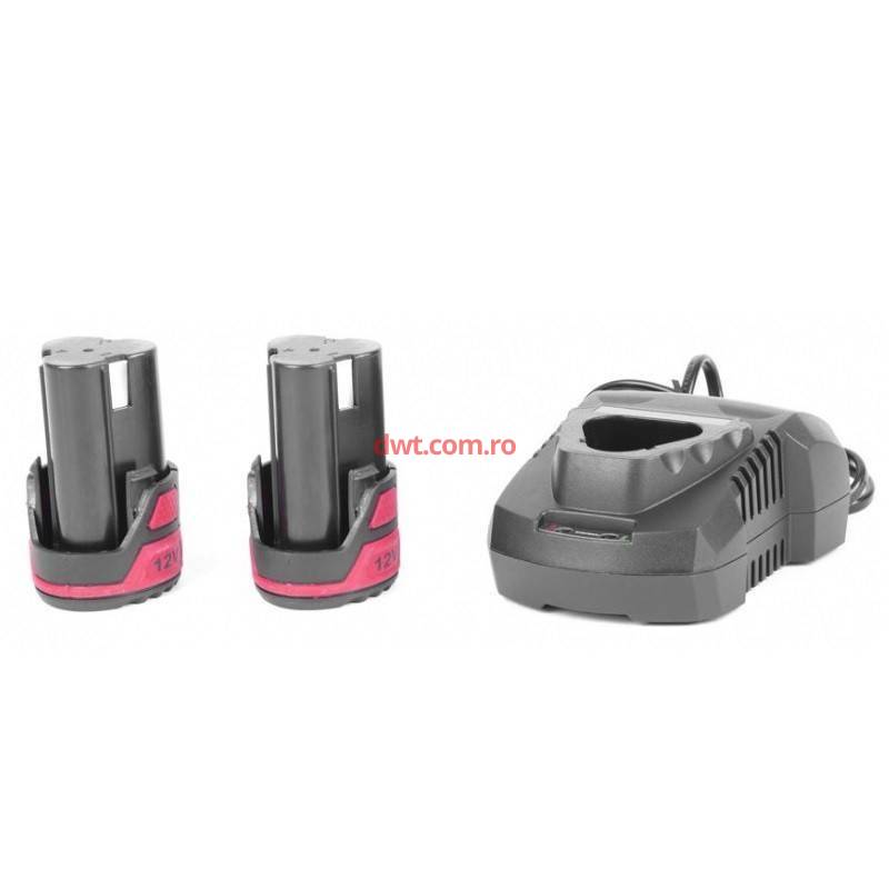 Inclus: 1 x Incarcator, 2 x baterie 2Ah Li-Ion, Trusa transport