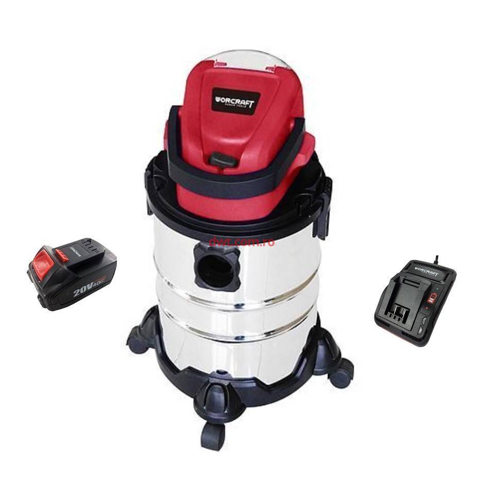 Worcraft sk-119112 Aspirator industrial, cu acumulator, Worcraft CVC-S20Li-20L, 20V, umed uscat, 20L, Inox |