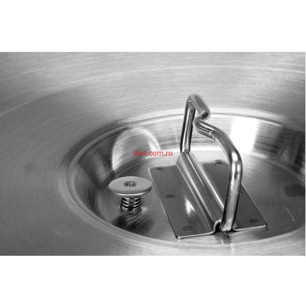 din otel inoxidabil, si sase cleme care inchid capacul. Calitatea ridicata si