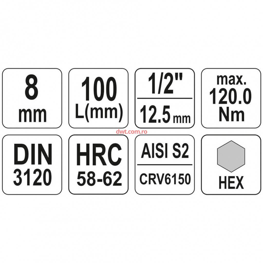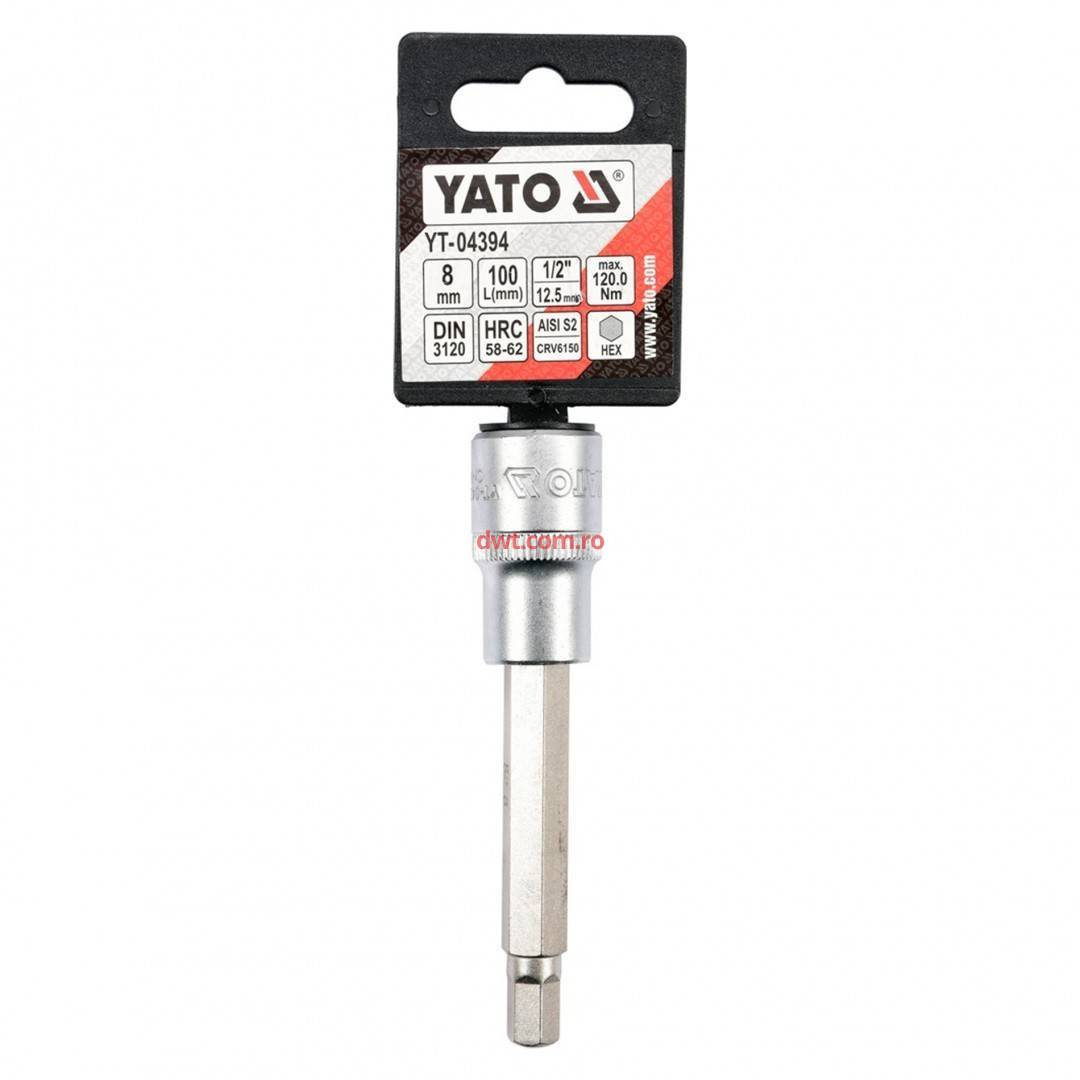 Comanda instant - YATO YT-04394 Bit lung hexagonal cu adaptor 1/2", 8x100mm, Cr-V, Yato YT-04394