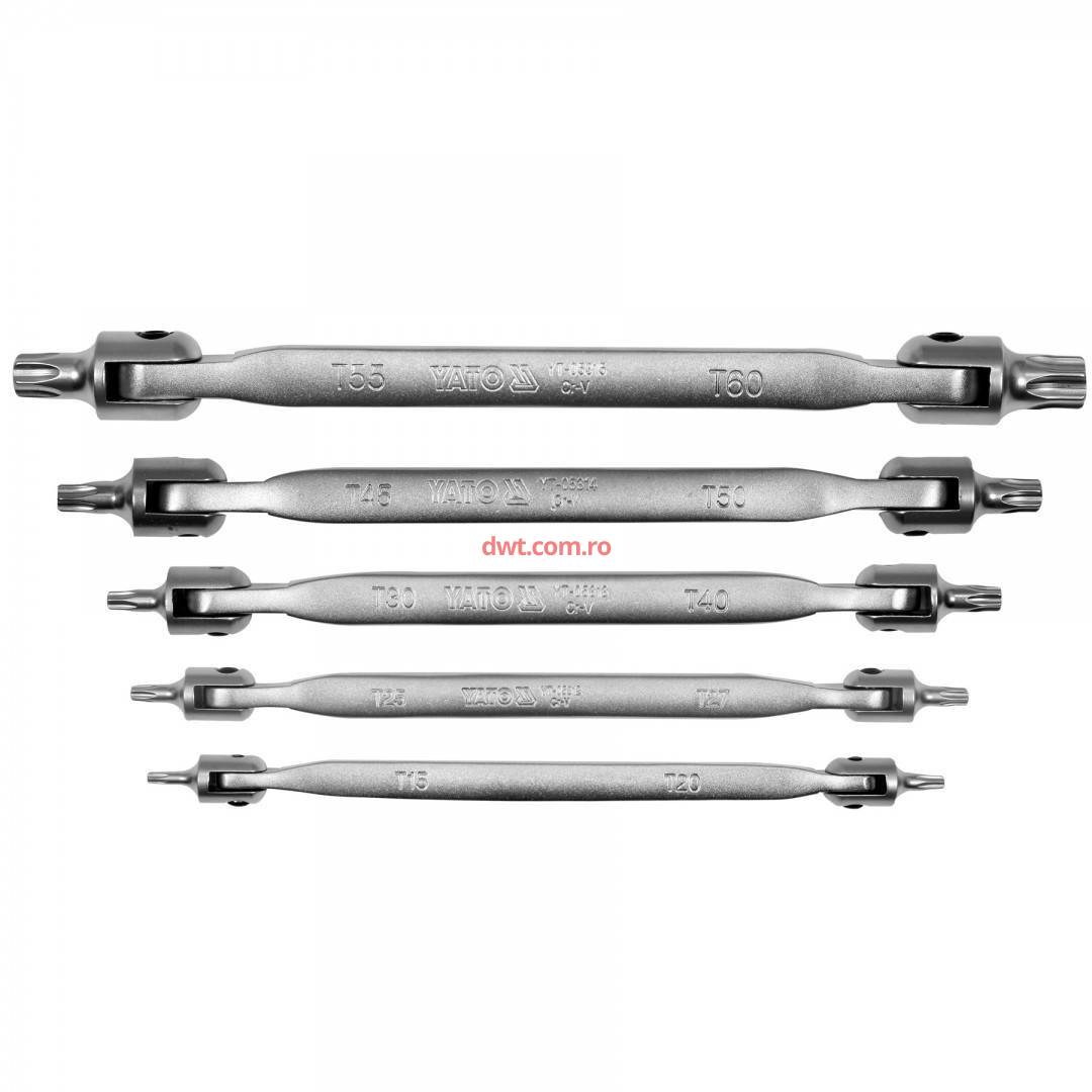 YATO YT-05320 Set 5 chei Torx cu articulatie Yato YT-05320, Crom Vanadiu, T15 - T60 |