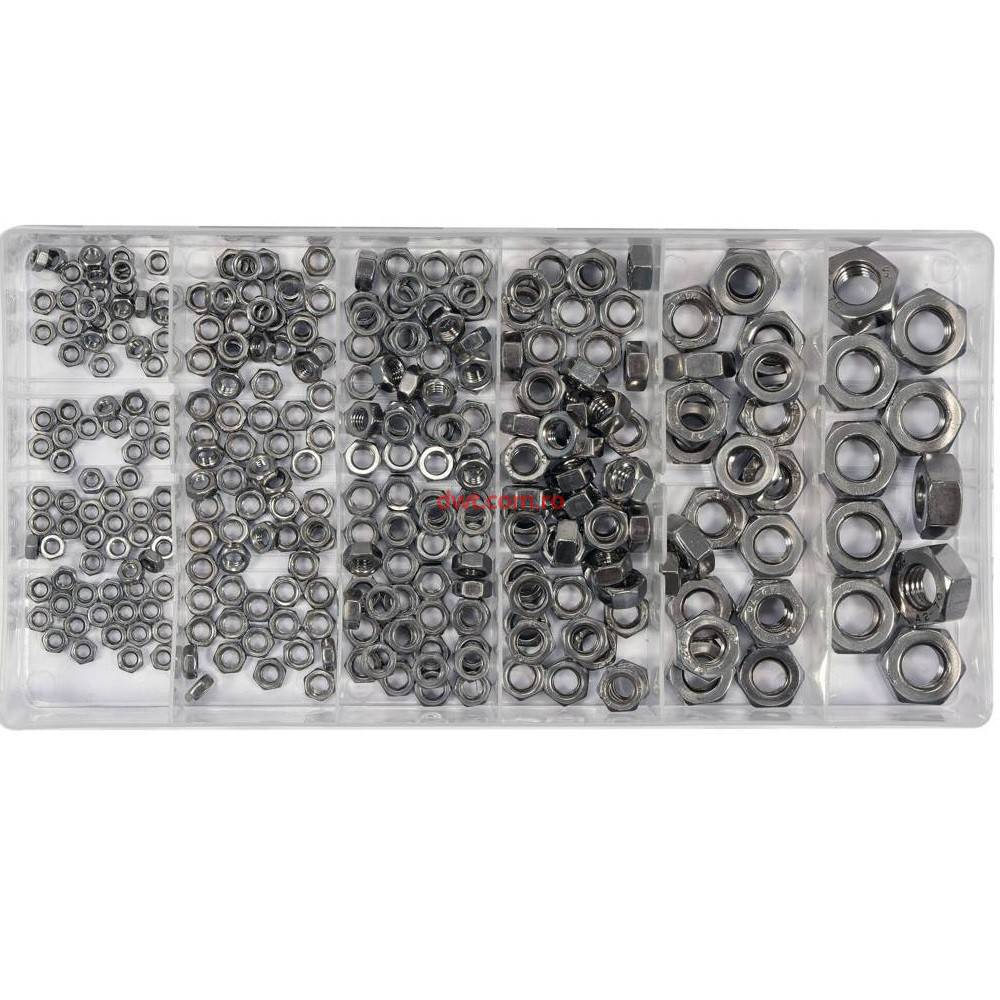 Set piulițe din inox de 300 de bucăți cu dimensiuni metrice: