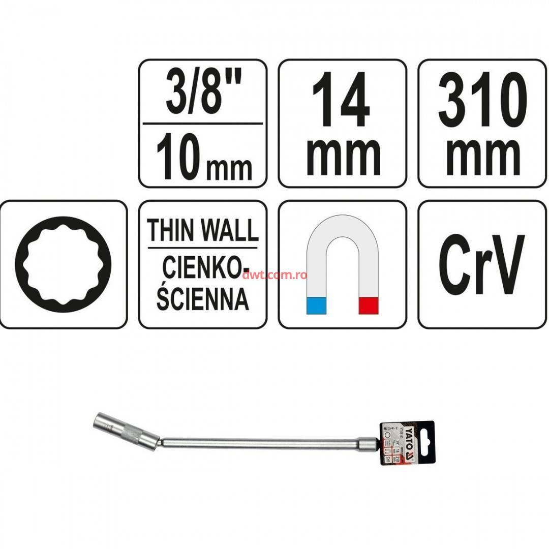 Comanda instant - YATO YT-08163 Cheie pentru bujii 14mm, Yato YT-08163, Cr-V, lungime 310mm, cu articulatie si extensie