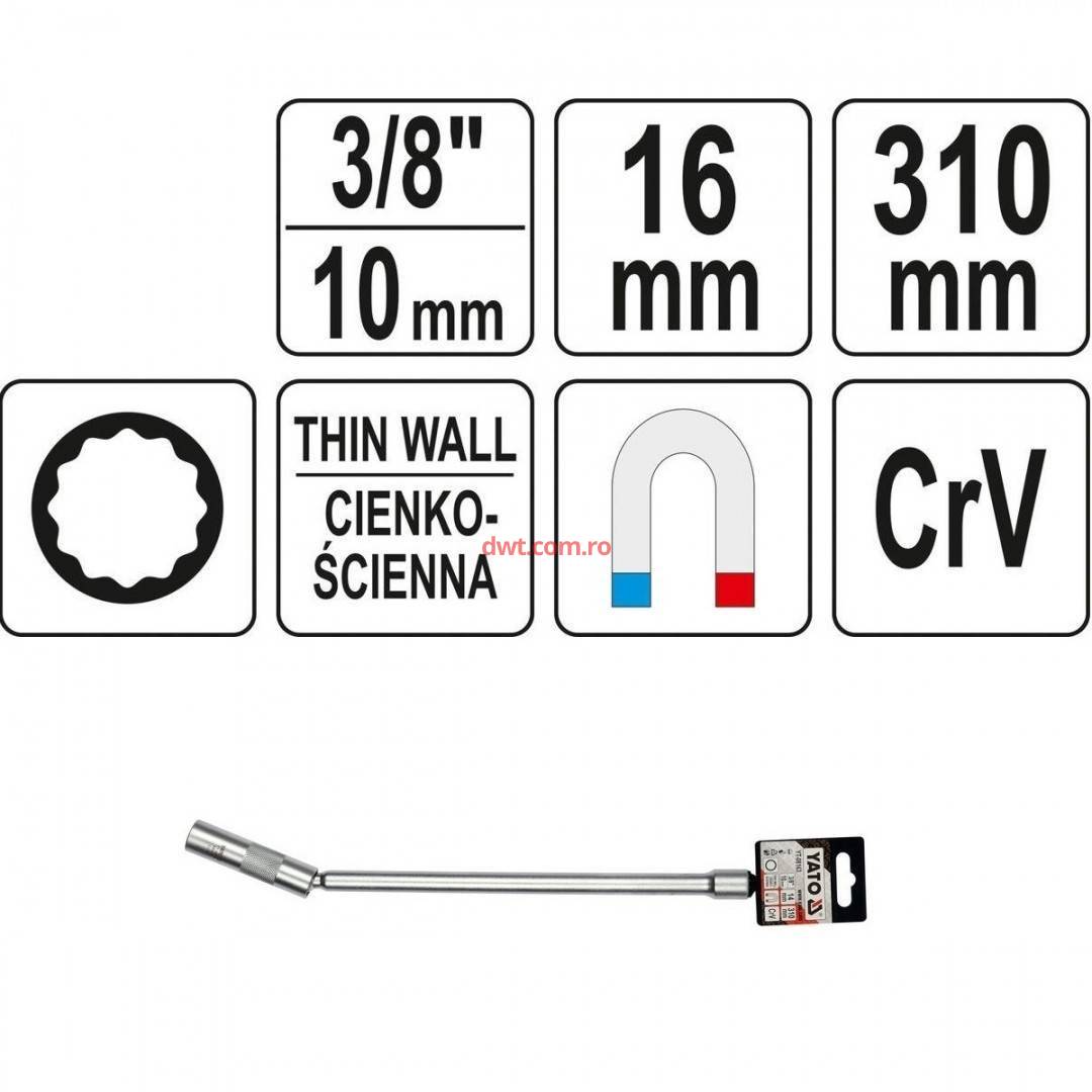 Comanda instant - YATO YT-08164 Cheie pentru bujii 16mm, Yato YT-08164, Cr-V, lungime 310mm, cu articulatie si extensie