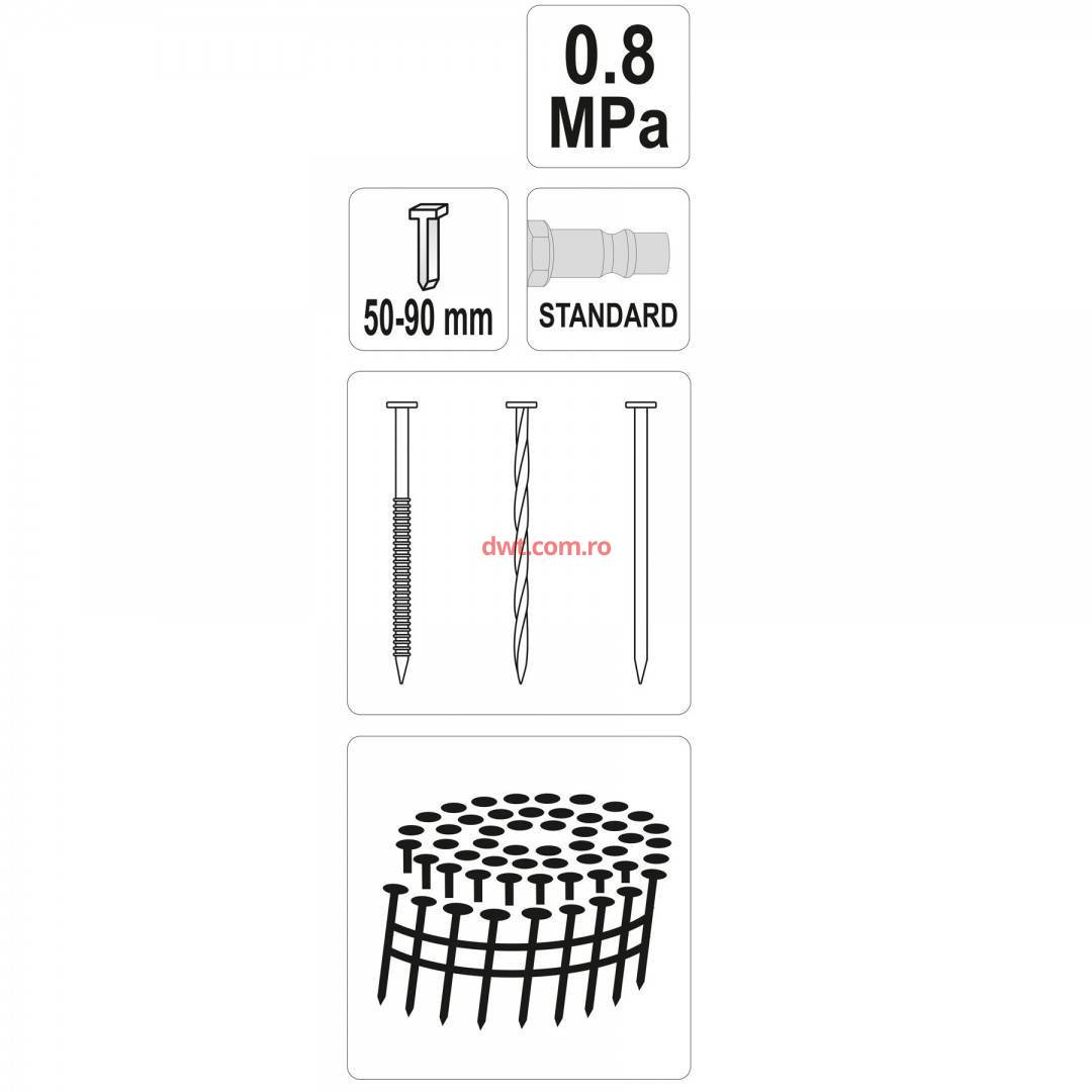 Pistol pneumatic pentru cuie lungi Yato YT-09214, domeniul