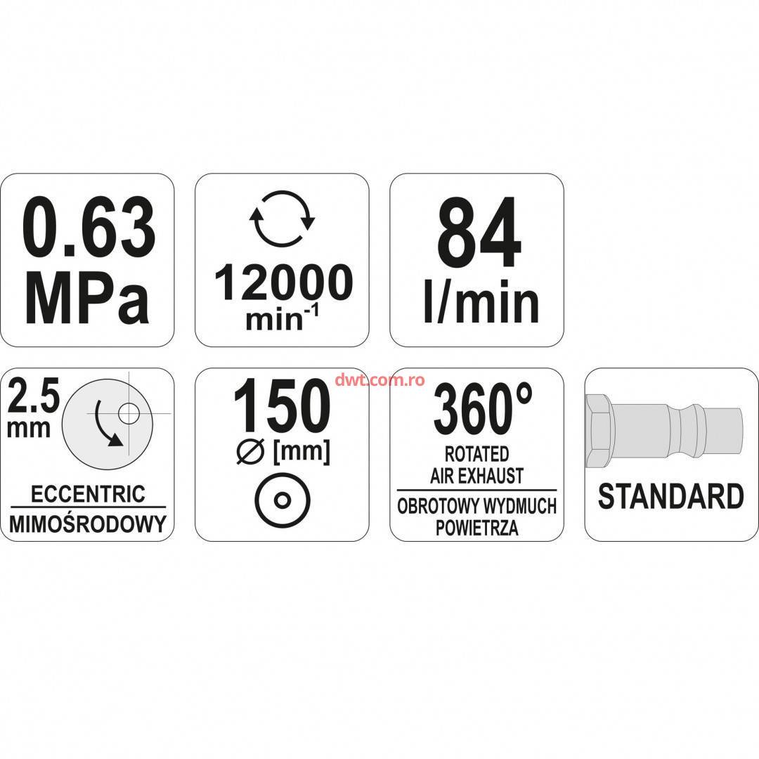 Comanda instant - YATO YT-09739 Slefuitor pneumatic Yato YT-09739, excentric 2.5mm, diametru disc 150mm, 12000rpm