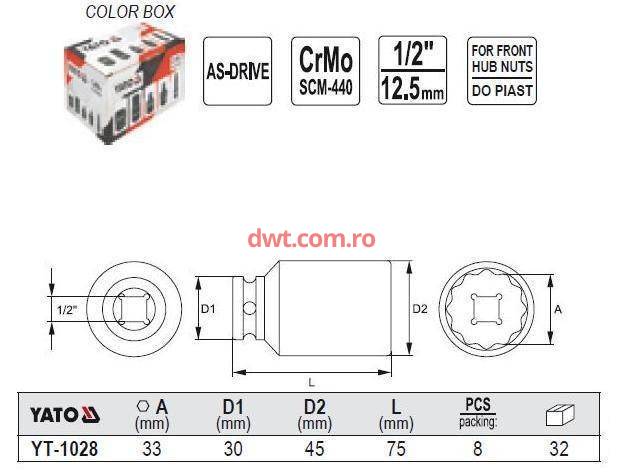 YATO YT-1028 CHEIE TUBULARA ADANCA, BIHEXAGONALA, DE IMPACT,1/2', YATO YT-1028 |