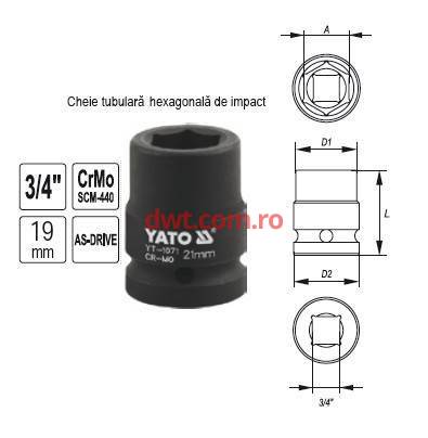 YATO YT-1070 Cheie tubulara hexagonala de impact, 3/4", 19-60mm, Yato |