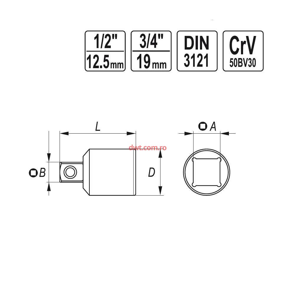 Comanda instant - YATO YT-1259 Adaptor 3/4" - 1/2", CR-V, Yato YT-1259