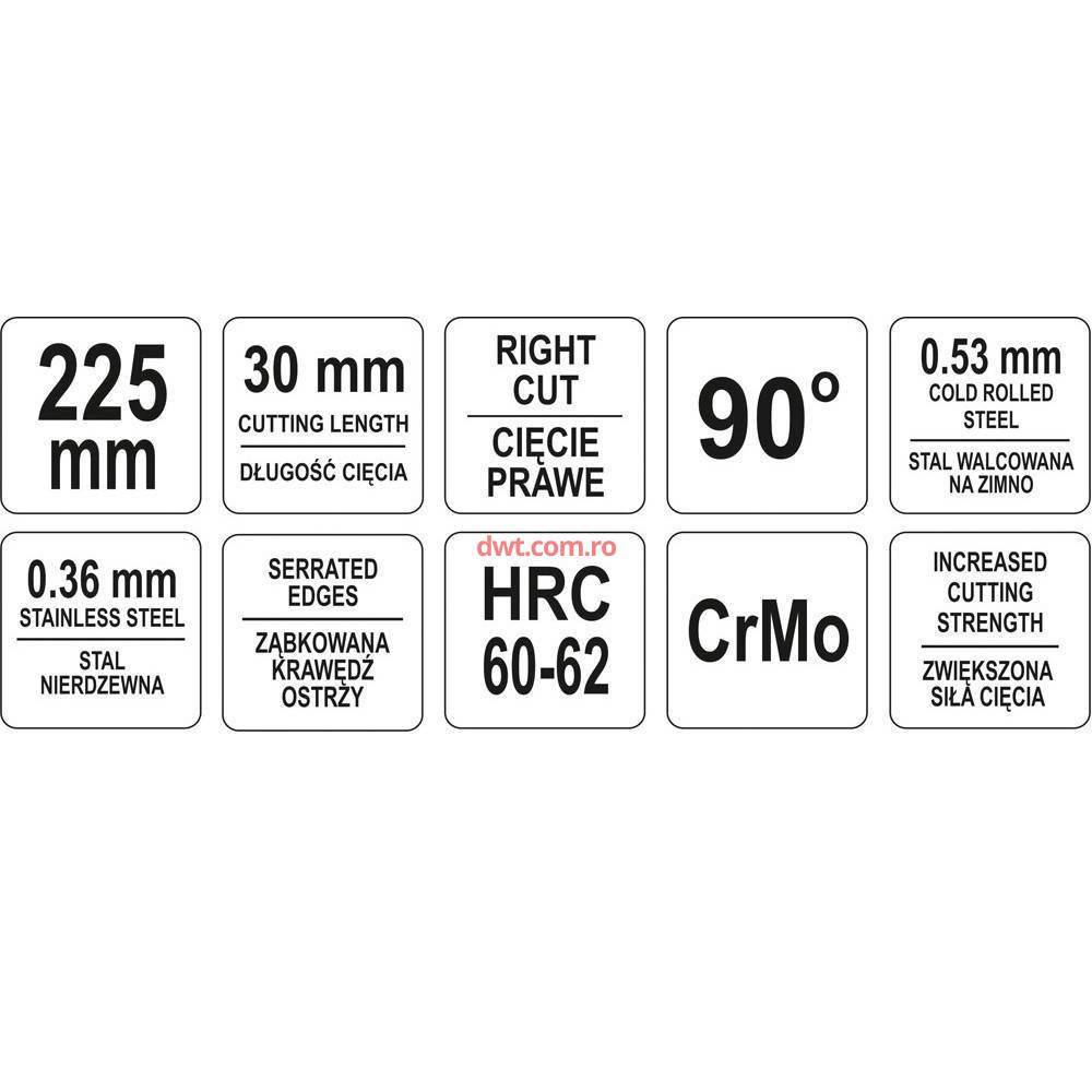 YATO YT-1914 Foarfeca de taiat tabla Yato YT-1914, unghi drept 90gr, max 0.78 mm |
