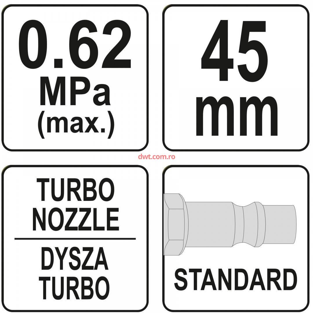 YATO YT-23722 Pistol de suflat cu aer comprimat cu duza turbo Yato YT-23722, 1/4, 6.2 Bar, 45mm |