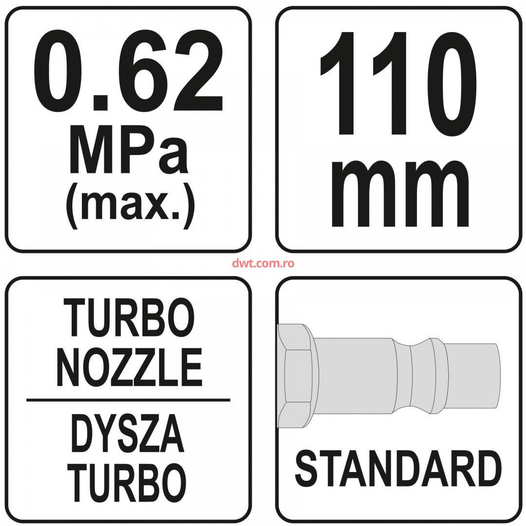 YATO YT-23723 Pistol de suflat cu aer comprimat cu duza turbo Yato YT-23723, 1/4, 6.2 Bar, 110mm |